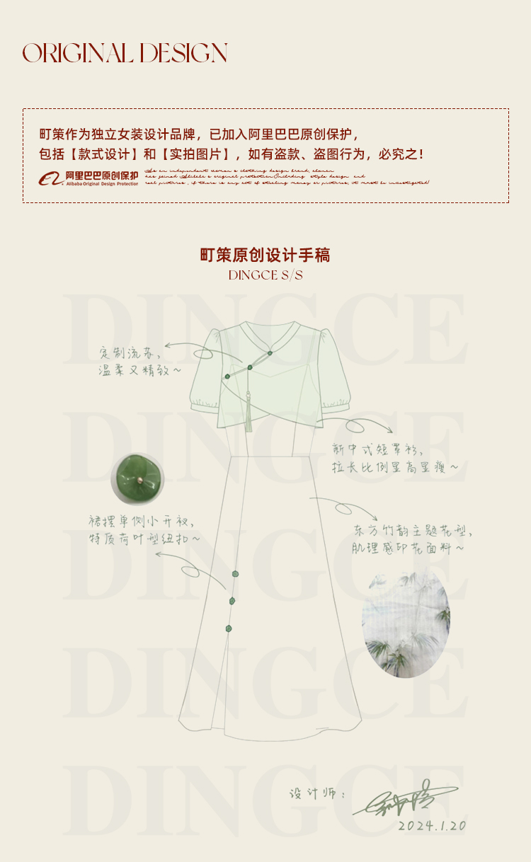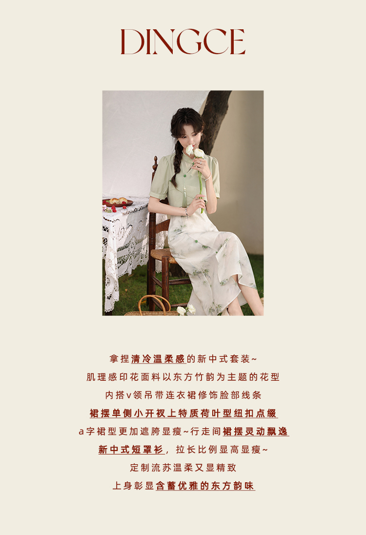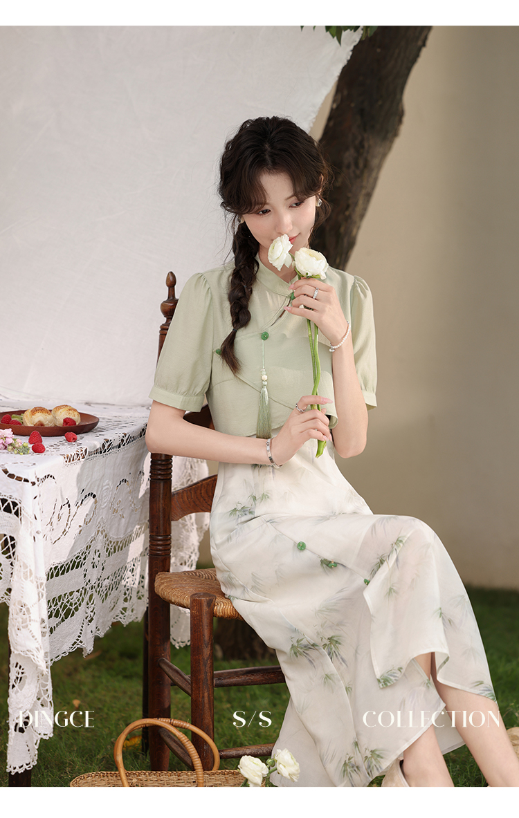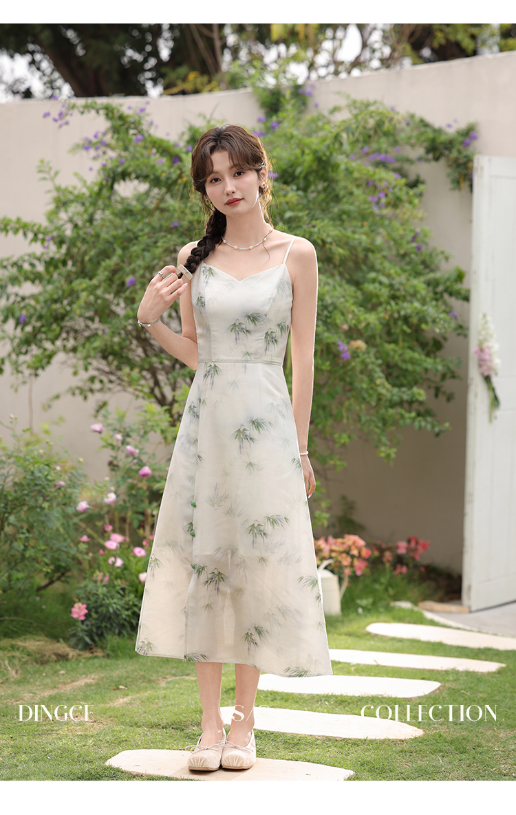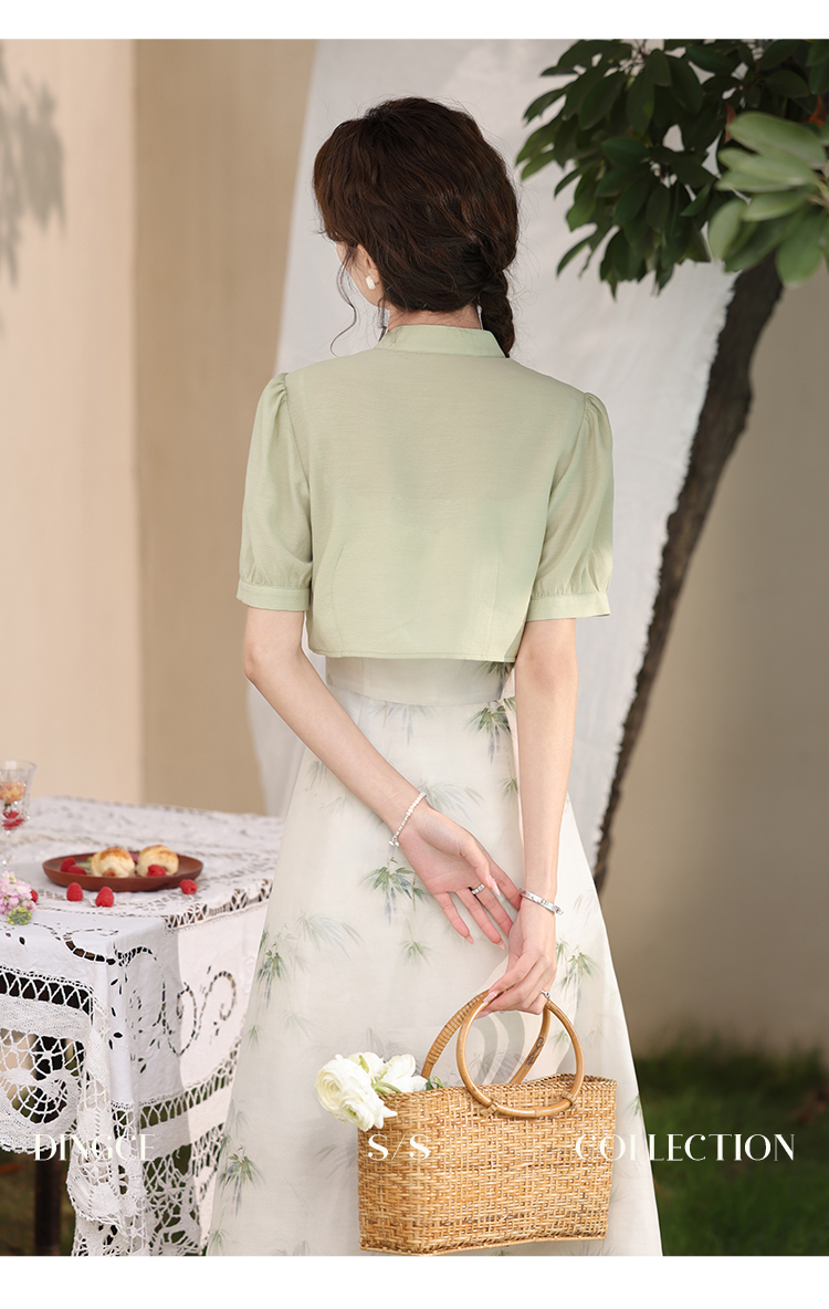 鹿向南 小个子《云雾竹吟》新中式连衣裙2024夏收腰裙子DC00907