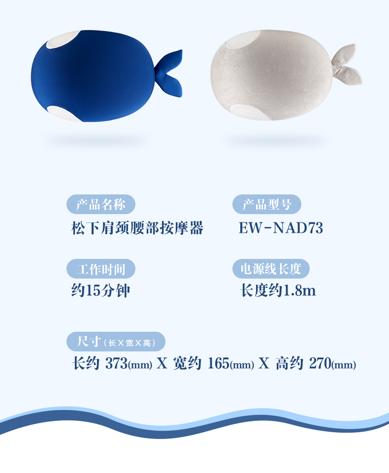 松下(Panasonic)小鲸鱼肩颈腰部按摩器EW-NAD73