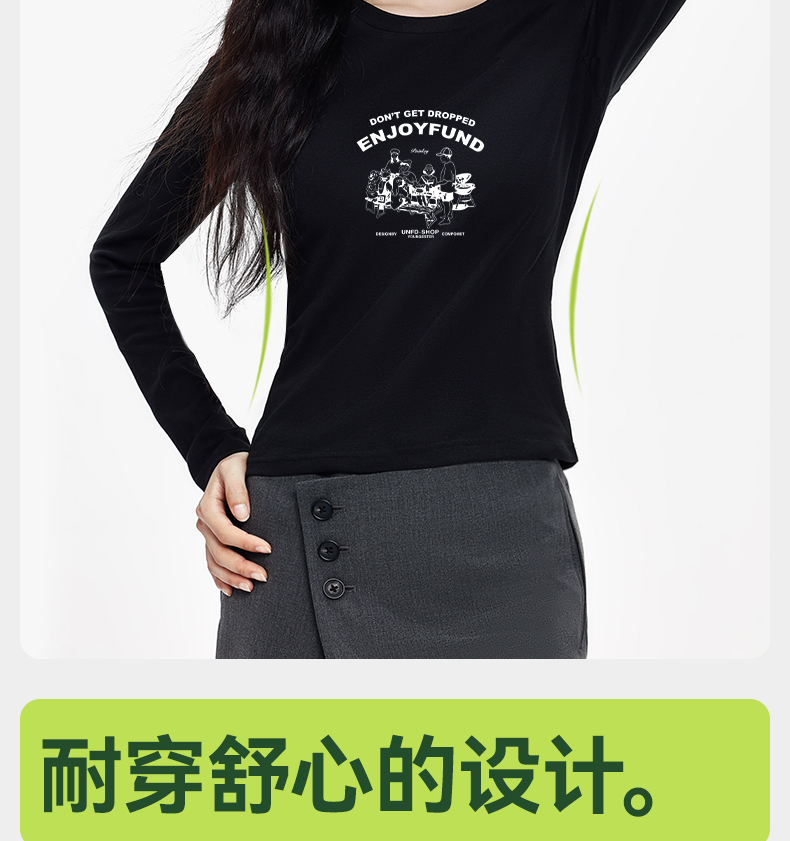 「棉的美学」甜辣风高级感长袖T恤女个性印花秋季舒适显瘦打底衫