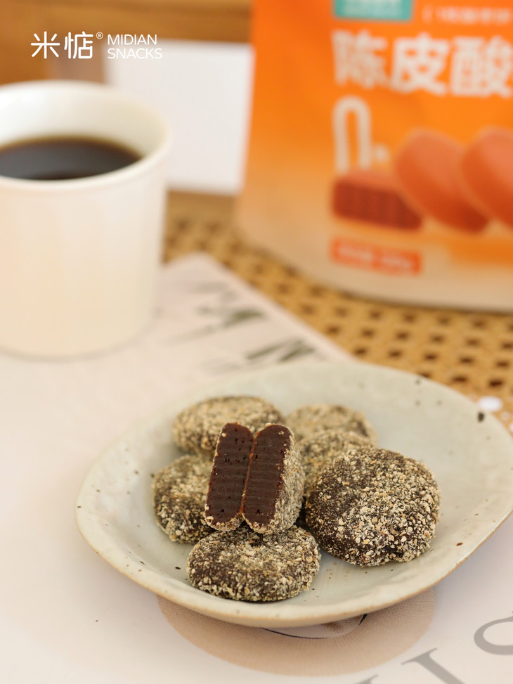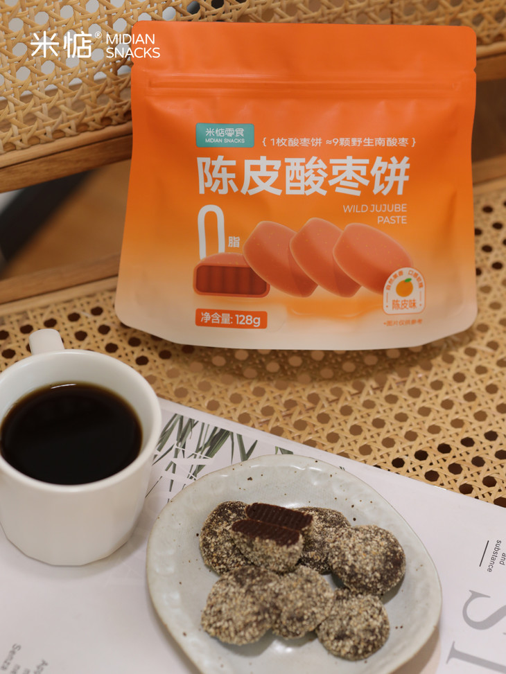 药食同源,以食为主,以药为辅 将自带草木香气的陈皮融入其中🪵 经过擂锤后的酸枣,裹上一层陈皮粉 样子灰头土脸,像是“一块石头” 陈皮的香气混合着酸甜的口感🍊 厚厚一片,没有核,一口下去都是肉