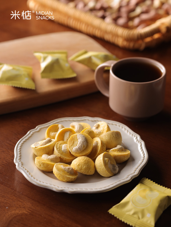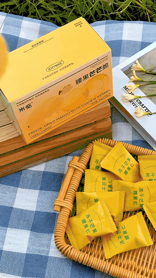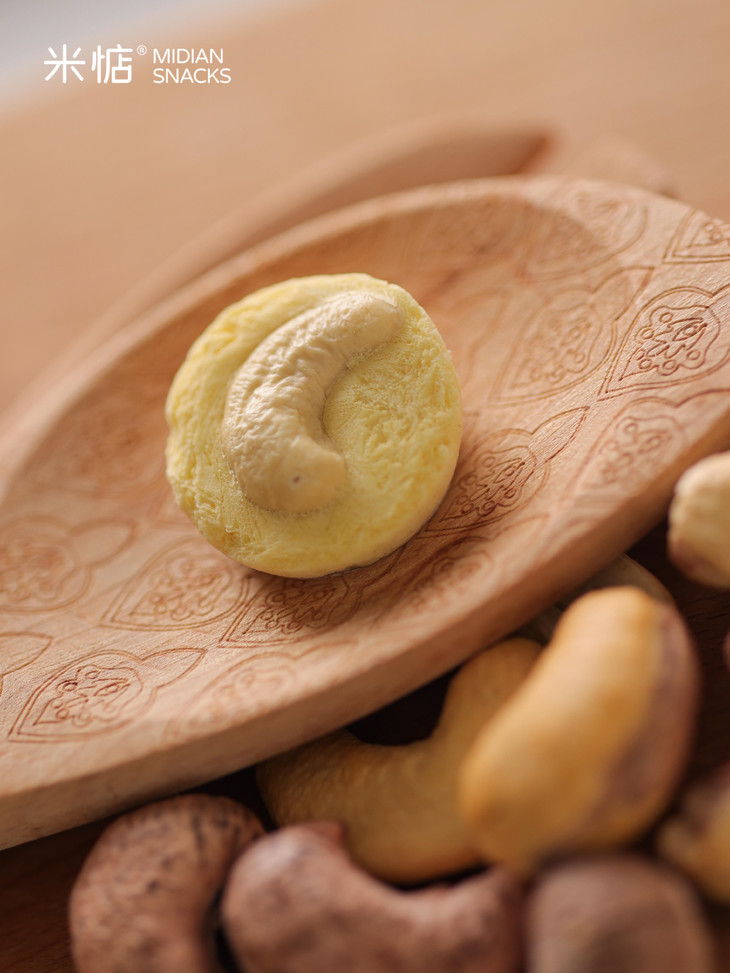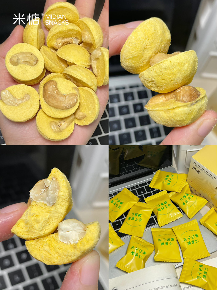 FD冻干锁鲜技术❄️零下35℃锁鲜 10斤水果原浆出1斤冻干,口感扎实绵密 大化保留水果自然果香与营养 采用海藻糖代替白砂糖,控糖轻负担 改变传统对腰果上火的印象 恒温烘烤果仁,非油炸,不上火