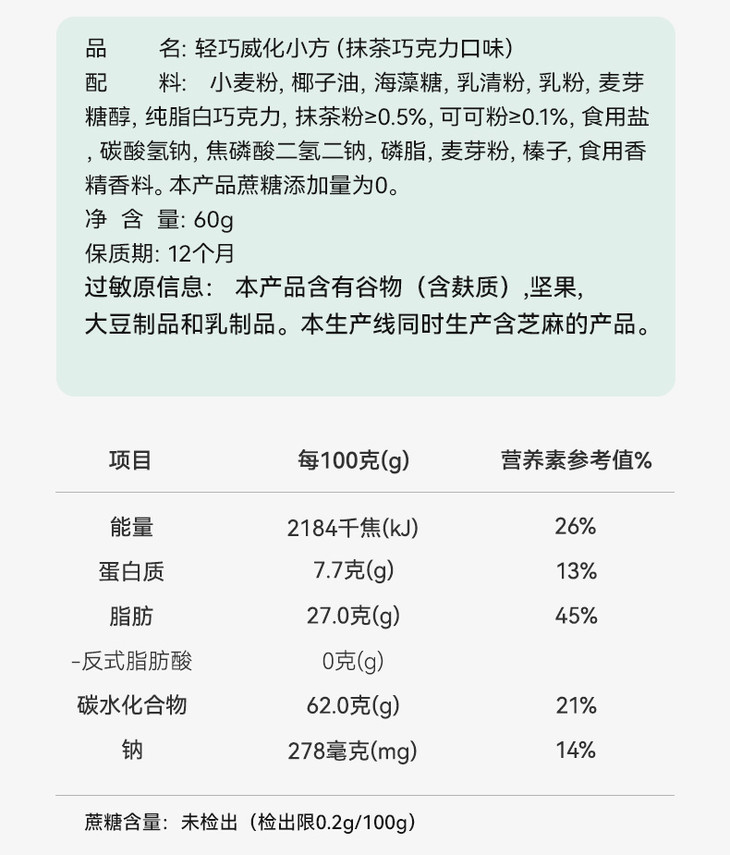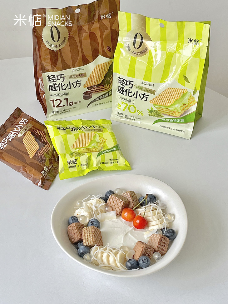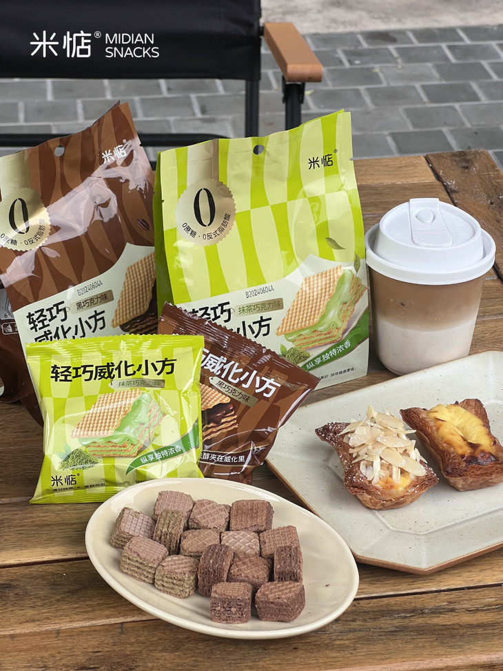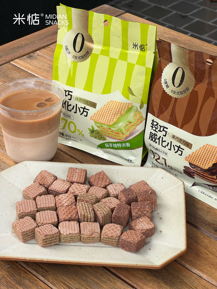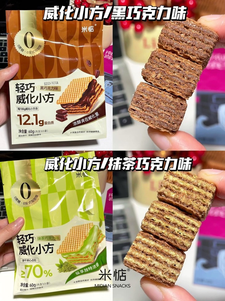 吃威化饼干真的很害怕遇到味淡还不酥脆 薄如纸片入口即化没口感,厚如饼皮松韧不友好 咱们家的威化小方扎实立体,层次分明🉑 丰富的夹心薄脆的威化各放光彩,恰到好处的酥脆 就像一块神奇的魔方,每一面都拥有无限可能性 清甘抹茶与香醇可可的美丽邂逅💕 每一次入口的咔呲咔呲,都是和耳朵共鸣的交响乐