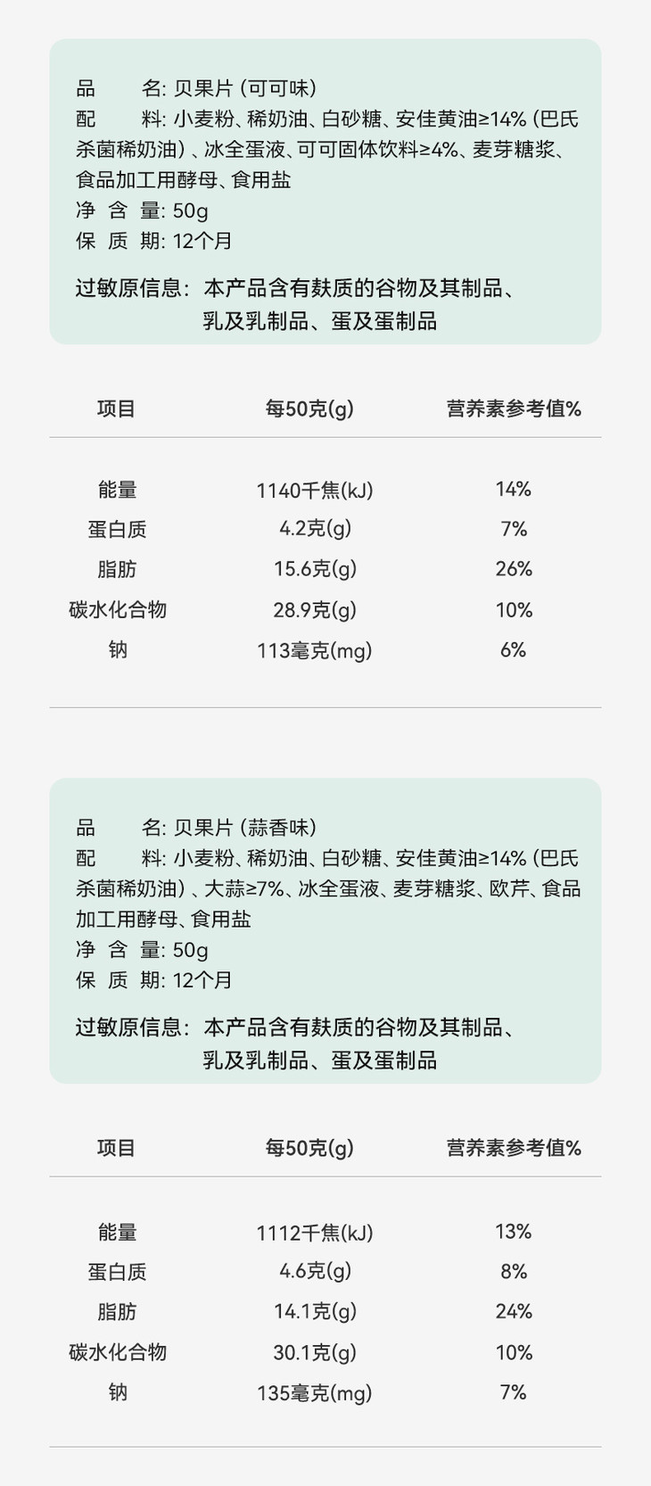 【保质期】碱水面包干&鹰嘴豆脆片:10个月 威化小方&贝果片&奶姜小方&陈皮酸枣饼&腰果芒芒脆:12个月 比脸大猪肉脯:6个月 黑松露苏打饼干:8个月