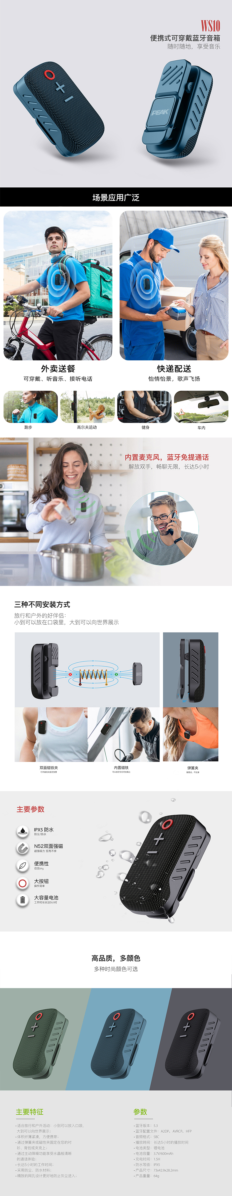 匹克*PEAK W10 户外骑行运动音箱YE41222 黑色—rxs