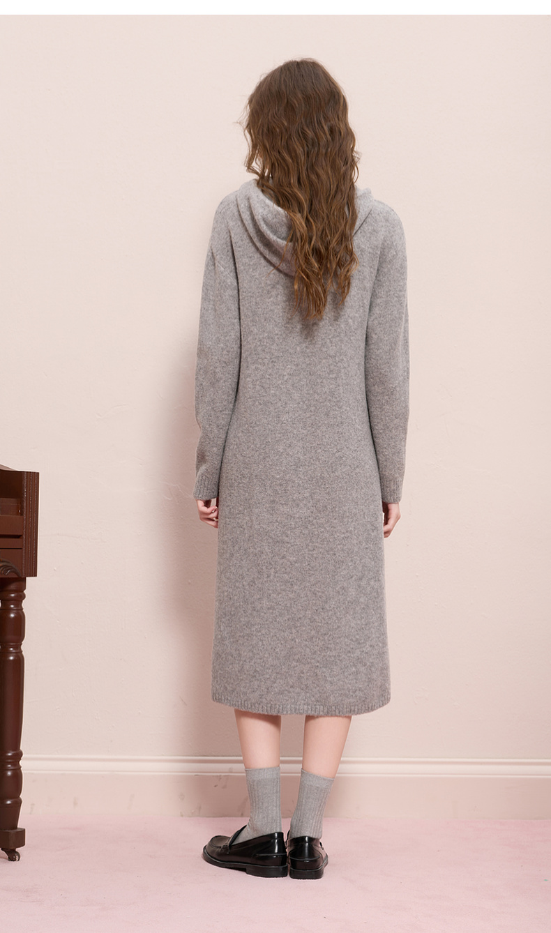 三彩2025冬季新款休闲连帽针织裙连衣裙长袖直筒裙慵懒长裙M