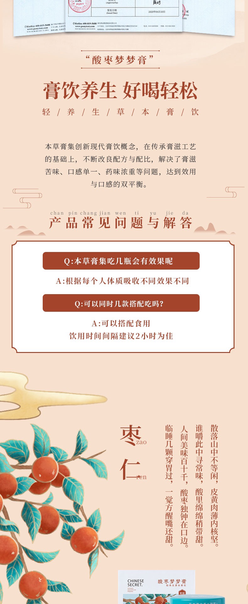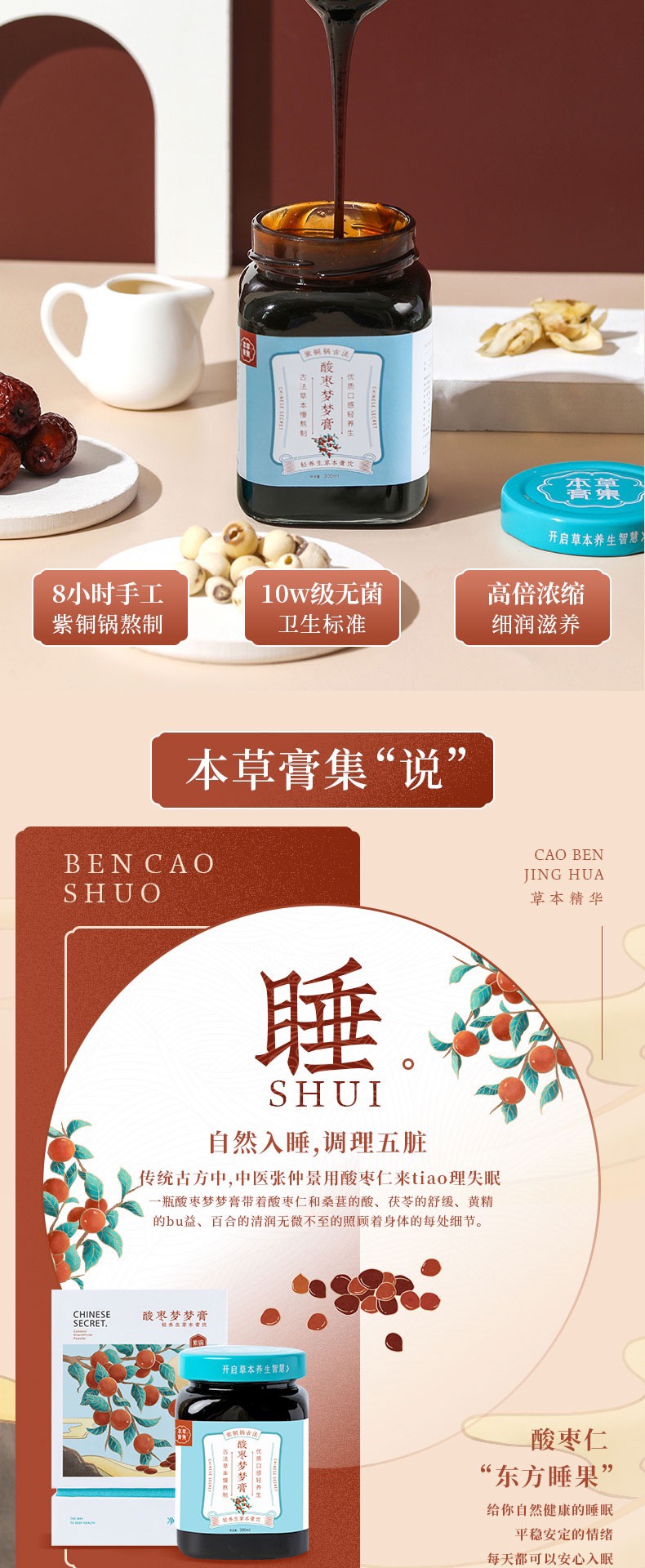 本草膏集酸枣梦梦膏酸枣仁膏安神膏睡眠膏酸枣百合茯苓桑葚黄精膏 商品缩略图0 本草膏集酸枣梦梦膏酸枣仁膏安神膏睡眠膏酸枣百合茯苓桑葚黄精膏 商品缩略图1 本草膏集酸枣梦梦膏酸枣仁膏安神膏睡眠膏酸枣百合茯苓桑葚黄精膏 商品缩略图2 本草膏集酸枣梦梦膏酸枣仁膏安神膏睡眠膏酸枣百合茯苓桑葚黄精膏 商品缩略图3 本草膏集酸枣梦梦膏酸枣仁膏安神膏睡眠膏酸枣百合茯苓桑葚黄精膏 商品缩略图4