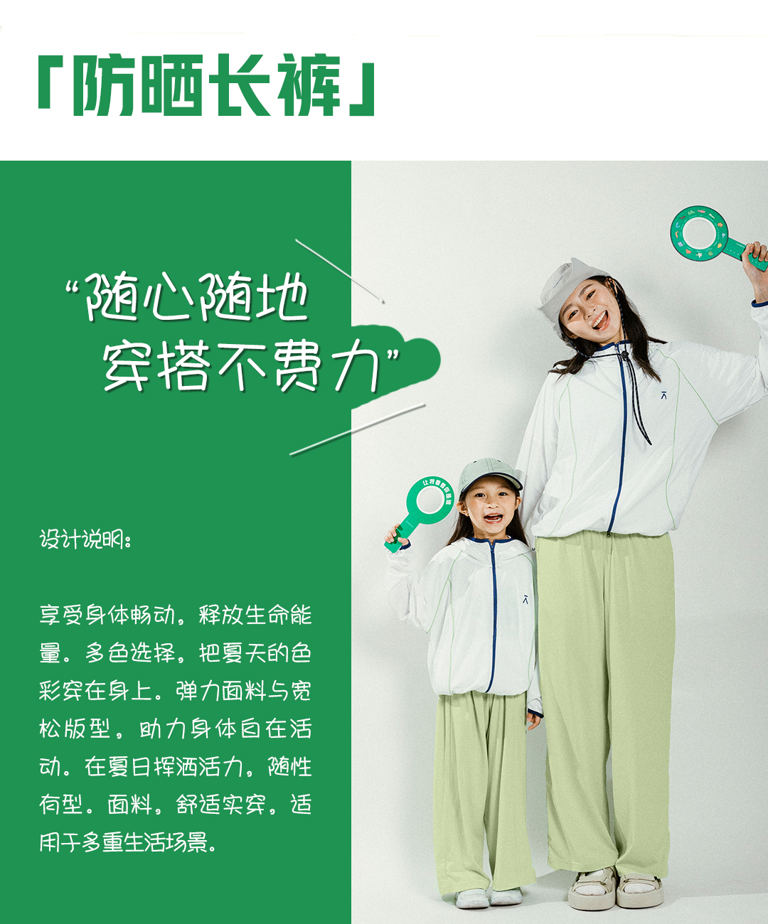 【出游季特惠】ACMEITEM · 爱棵米户外亲子防晒长裤UPF50+柔软直筒宽松休闲裤子女GAG2020902C