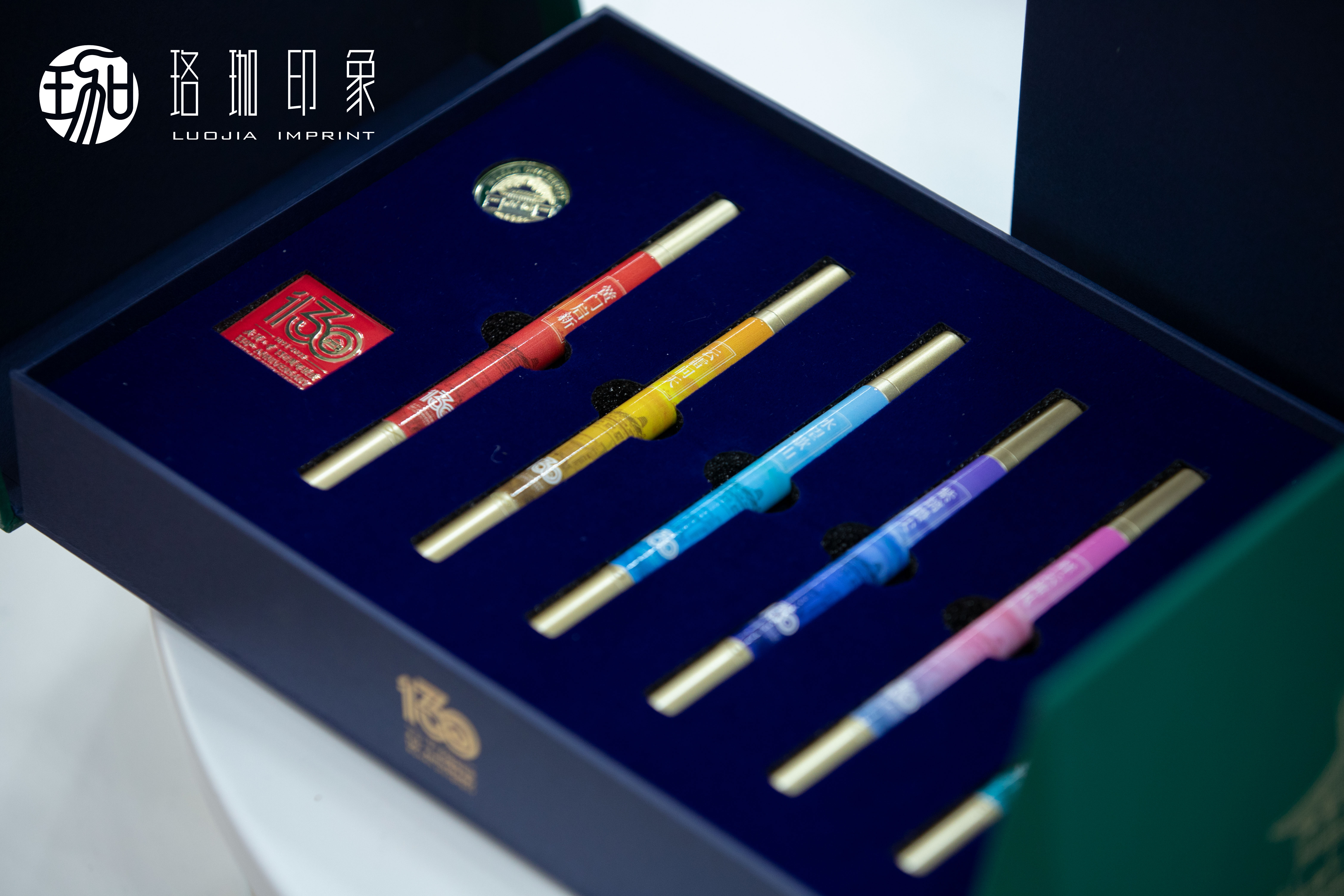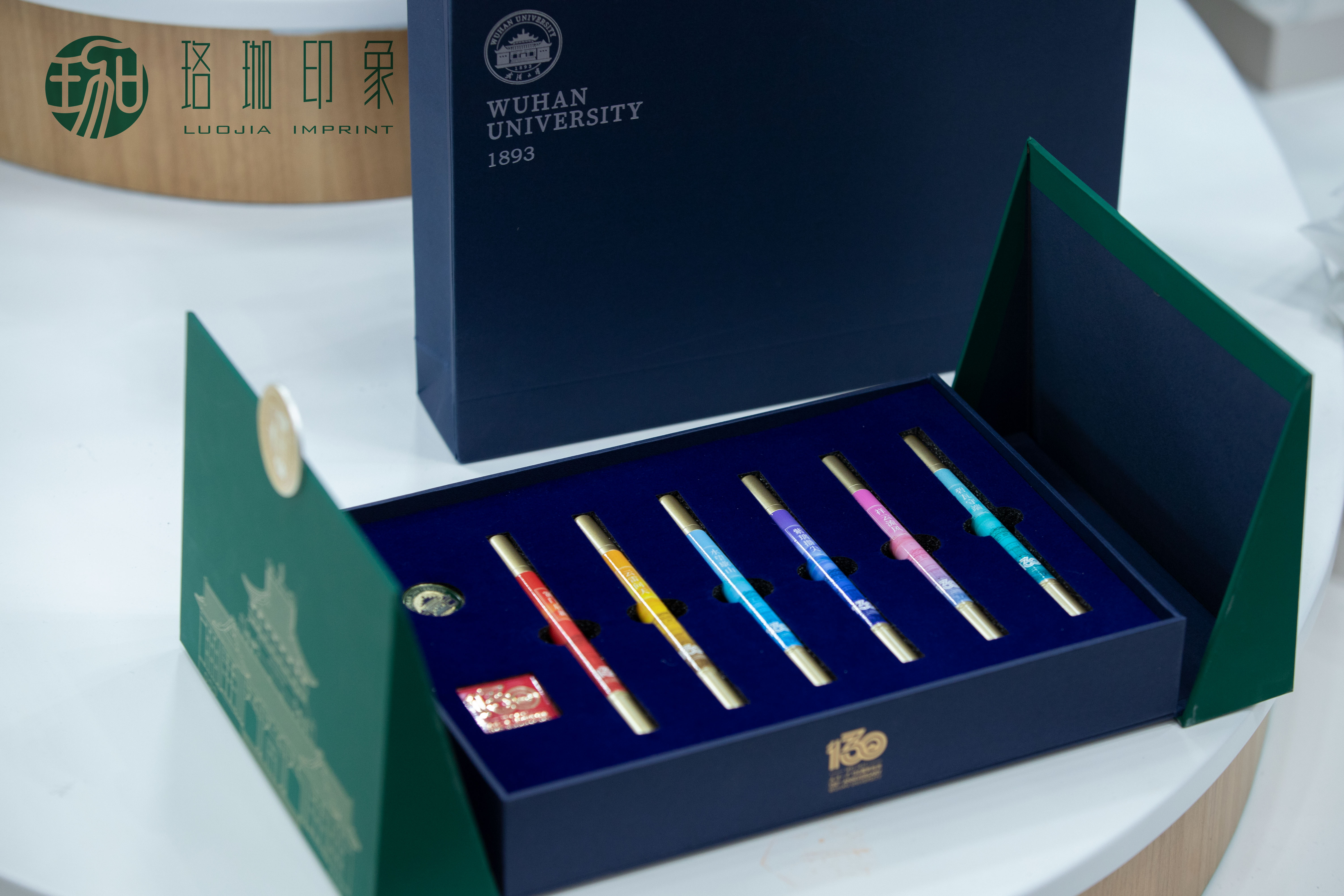 套装包括六支永恒笔和两枚徽章。六支永恒笔分别对应武汉大学130周年校庆"黉门启新”“碧瓦守端”“云雷问天”“祥云流风”“紫璃攒尖”“水望歇山”六个板块。每一支笔都是对地球“爱的守护”,环保耐用,可削可擦,字迹清晰;精选130周年校庆徽章和武大徽章,质感卓越。
