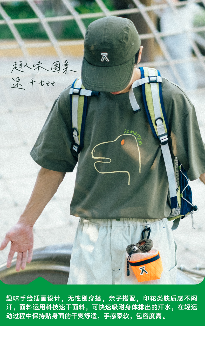 【品牌直发-降价福利】ACMEITEM爱棵米 户外亲子速干短袖轻量抗静电宽松印花短袖T恤男女GAF3440150E/GAF3440151E