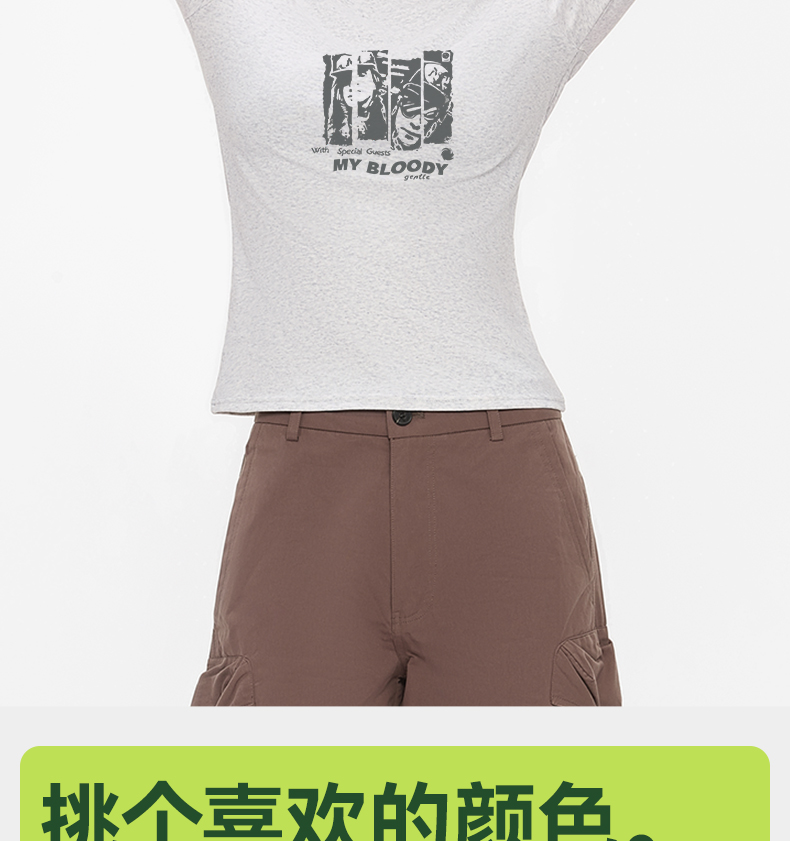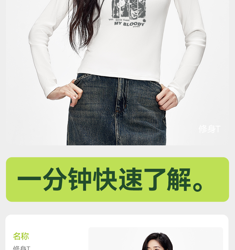 「棉的美学」莱卡棉辣妹修身显瘦长袖T恤女印花秋季舒适打底衫