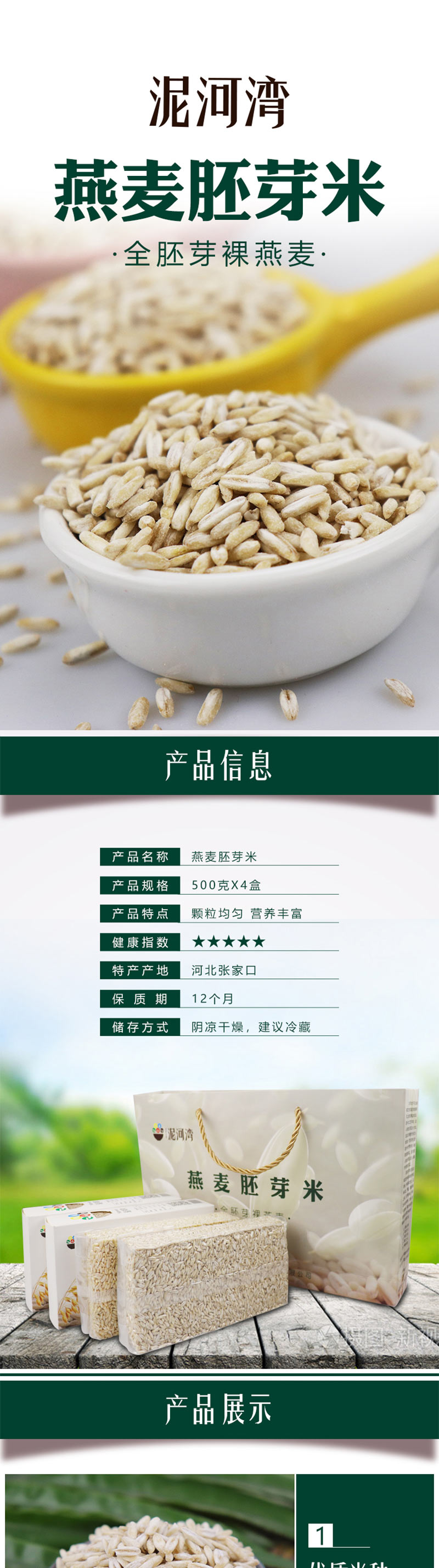 泥河湾 张家口阳原县燕麦胚芽米礼品袋2千克x1提 五谷杂粮