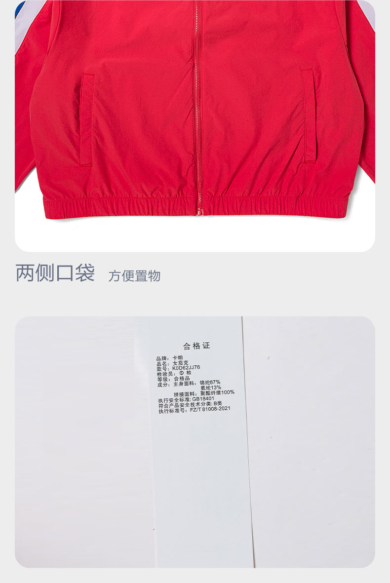 Kappa卡帕串标茄克2023新款女梭织运动外套休闲立领开衫长袖K0D62JJ76