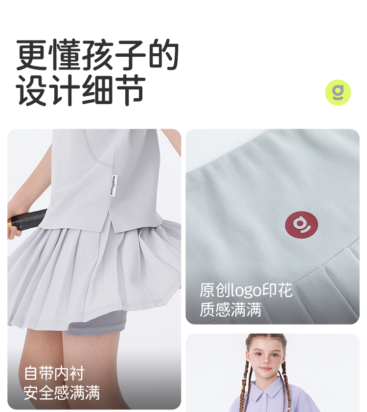 onmygame【轻舞风琴】女童短袖t恤儿童百褶运动上衣夏季2024新款