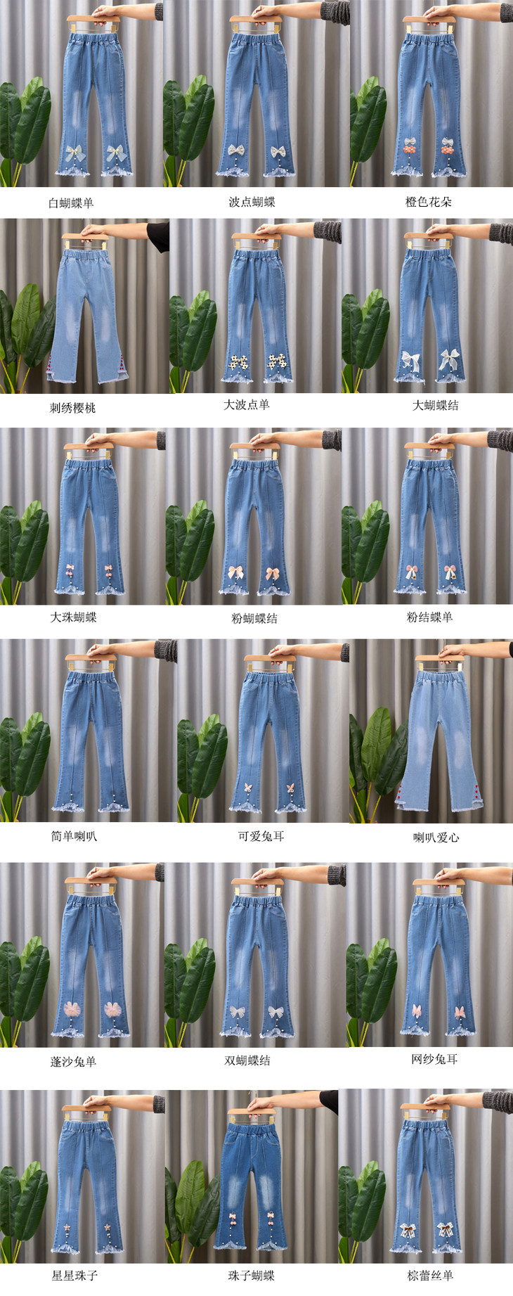 今天的牛仔喇叭裤,咱们一次性选了18个颜色,90-160的尺码,闭眼选都好看。