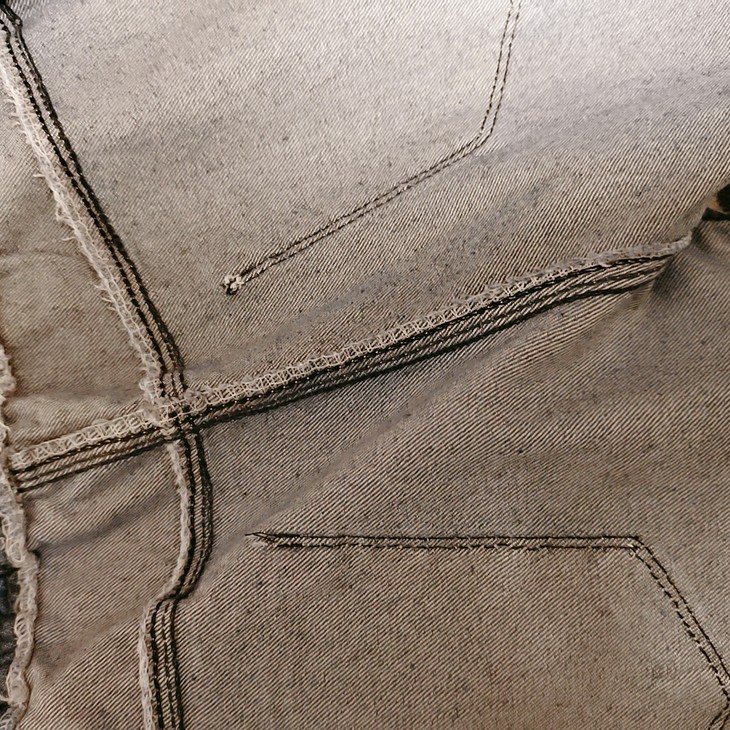 裤子走线做工也非常不错,整条裤子翻过来,裤腿走线流畅细致工整。