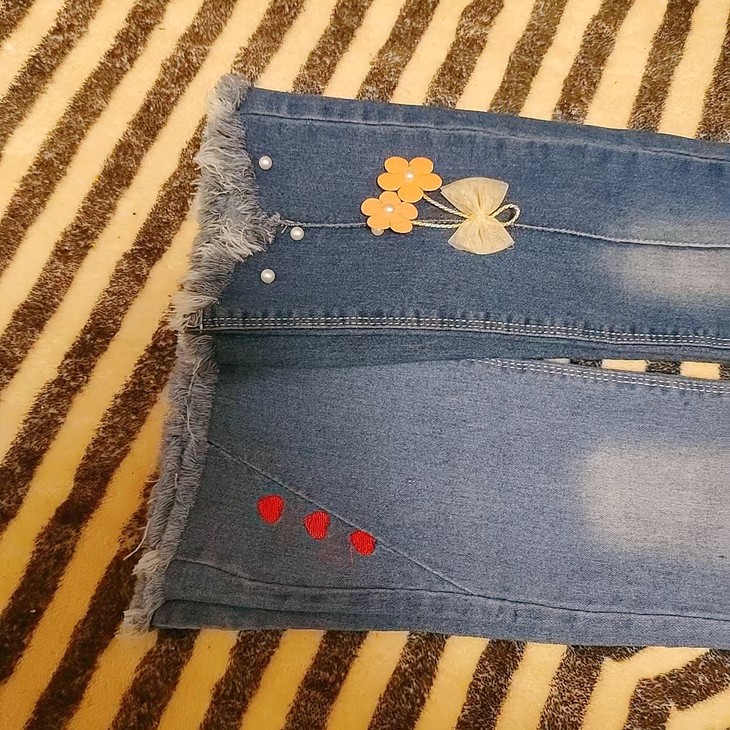 每一款牛仔裤除了裤脚装饰,还有裤脚都做了不规则的流苏款式。