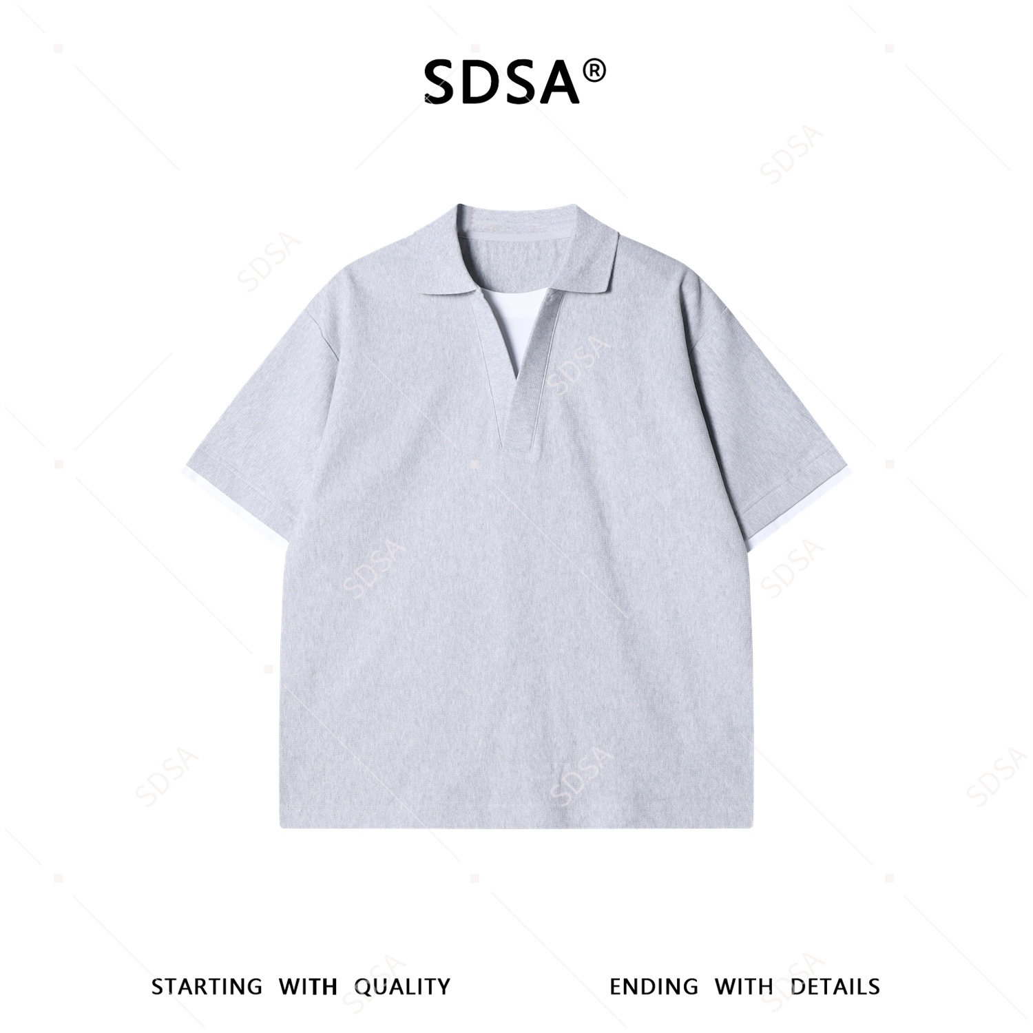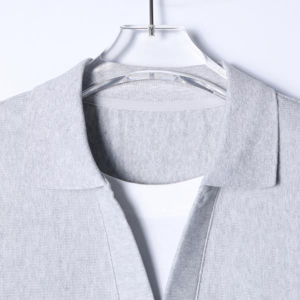 26T558SDSA男装2026新款高贵轻奢简约肌理感撞色假两件翻领短袖T恤百搭