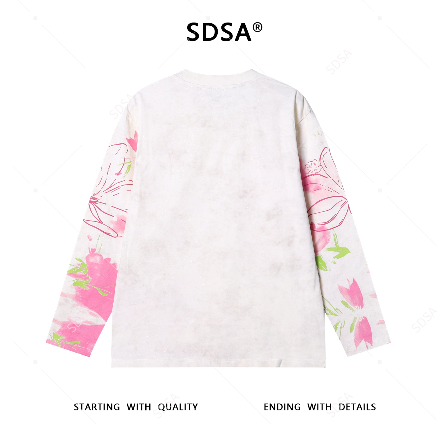 T4744秋季高级感新款男士满天星撞色花卉印花长袖T恤百搭圆领时尚上衣