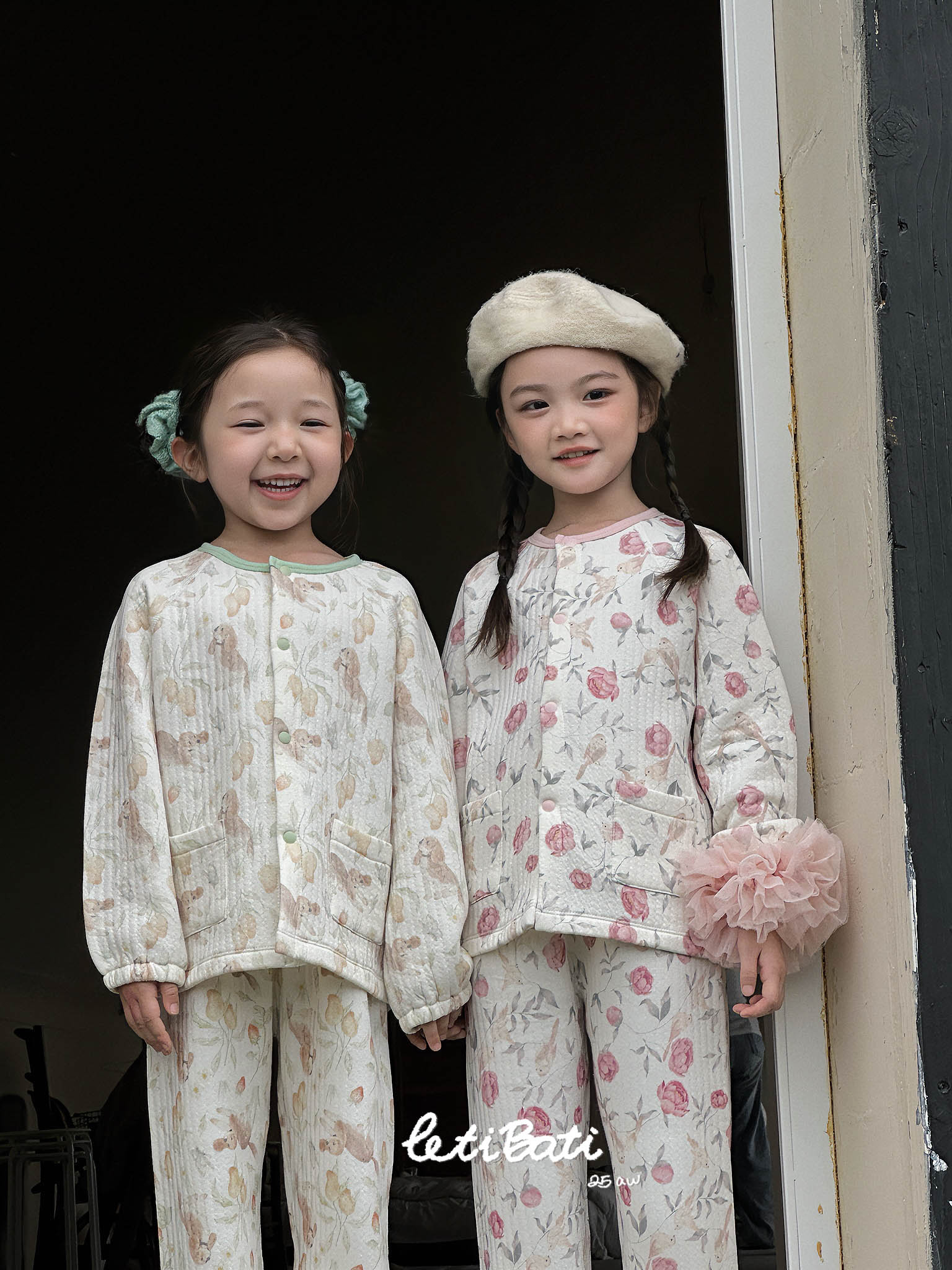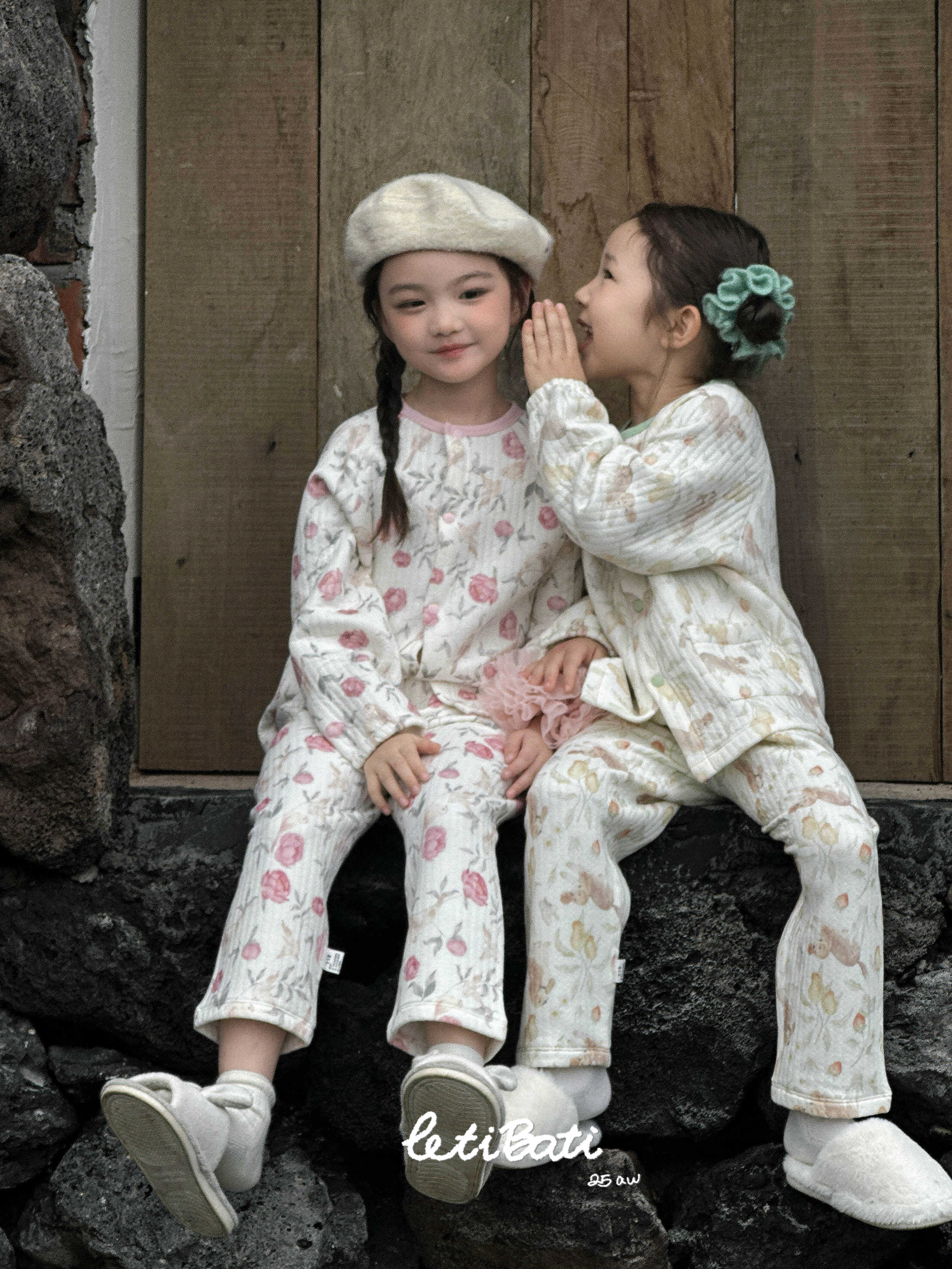 蕾蒂巴蒂【亲子款】三层夹棉家居服睡衣 秋冬新款宝宝中大童长袖碎花保暖儿童童装