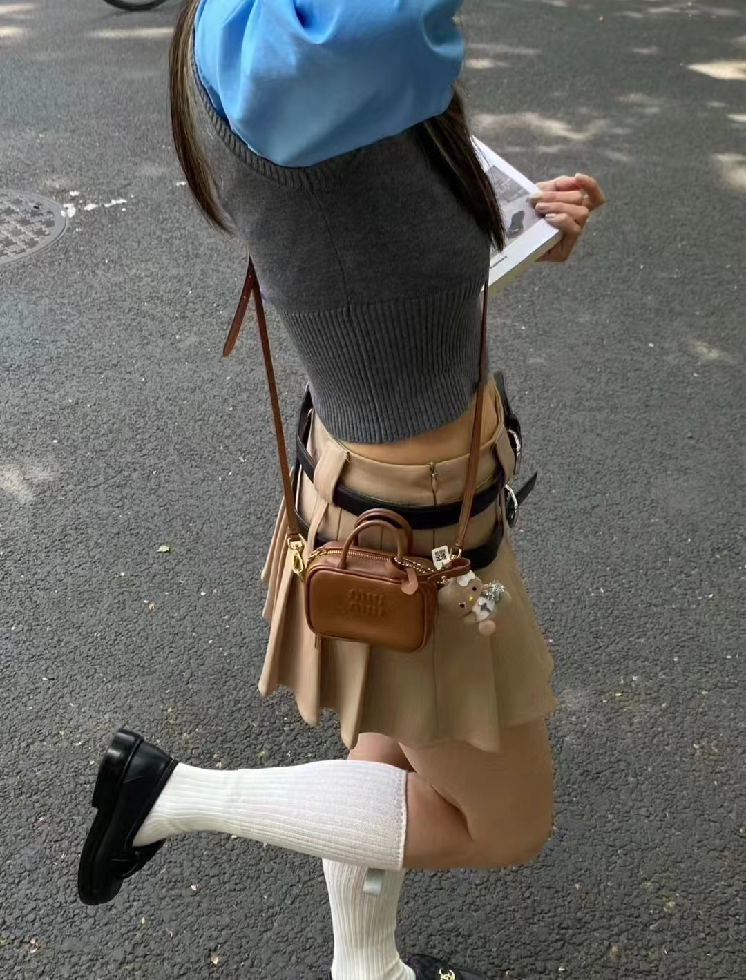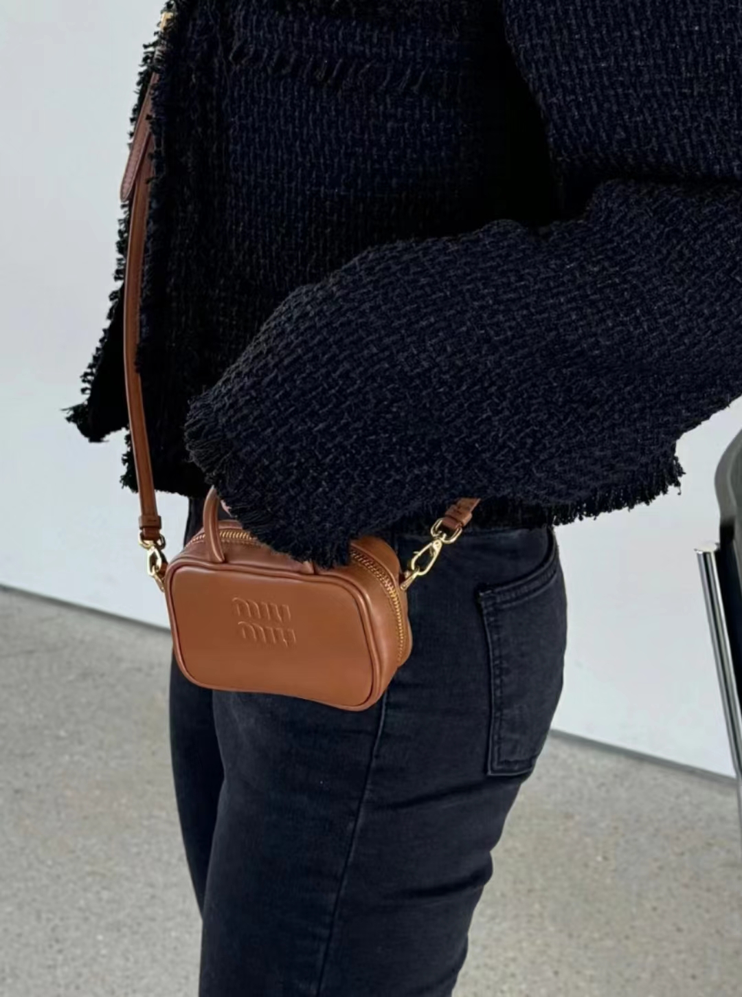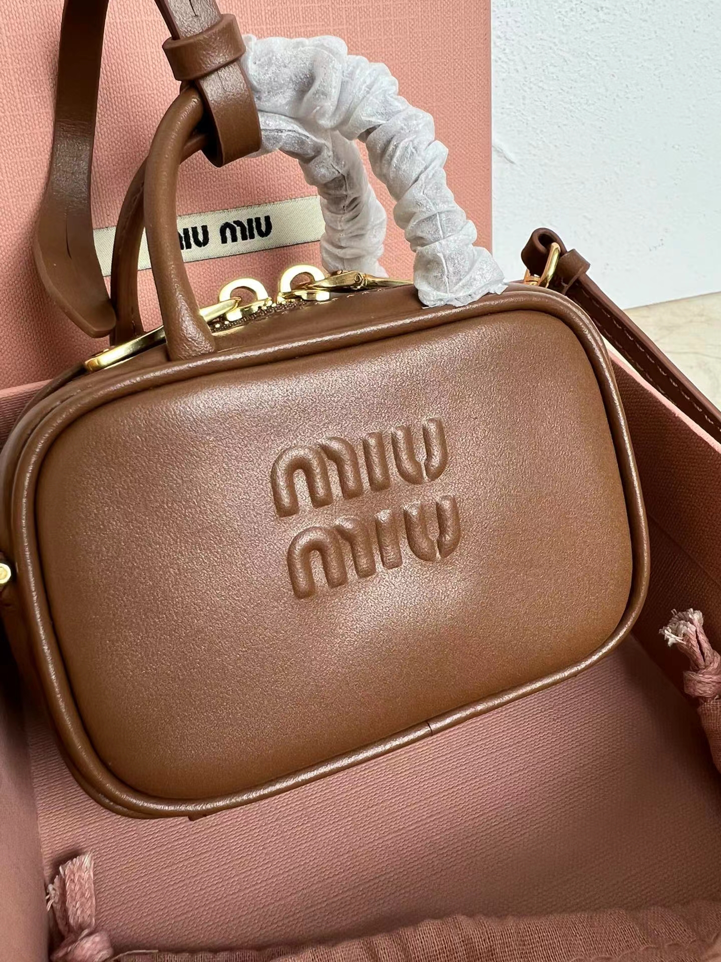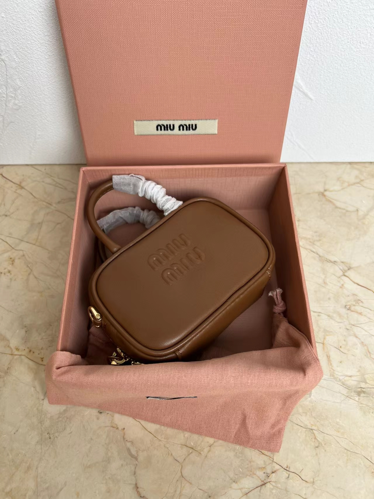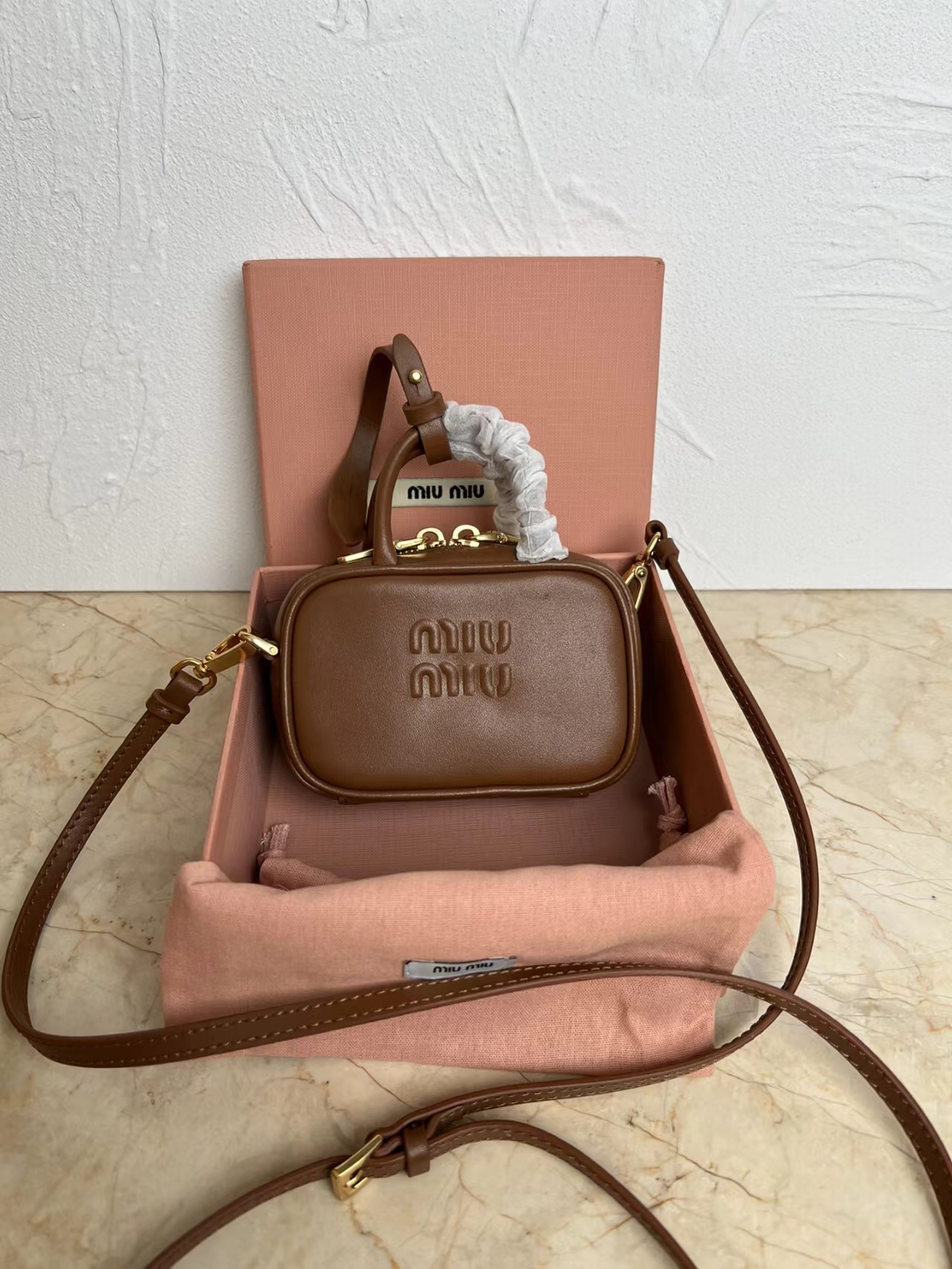 MIU MIU缪缪 压花字母徽标可拆卸可调式肩带 皮革 手提单肩斜挎包 超迷你(HH)