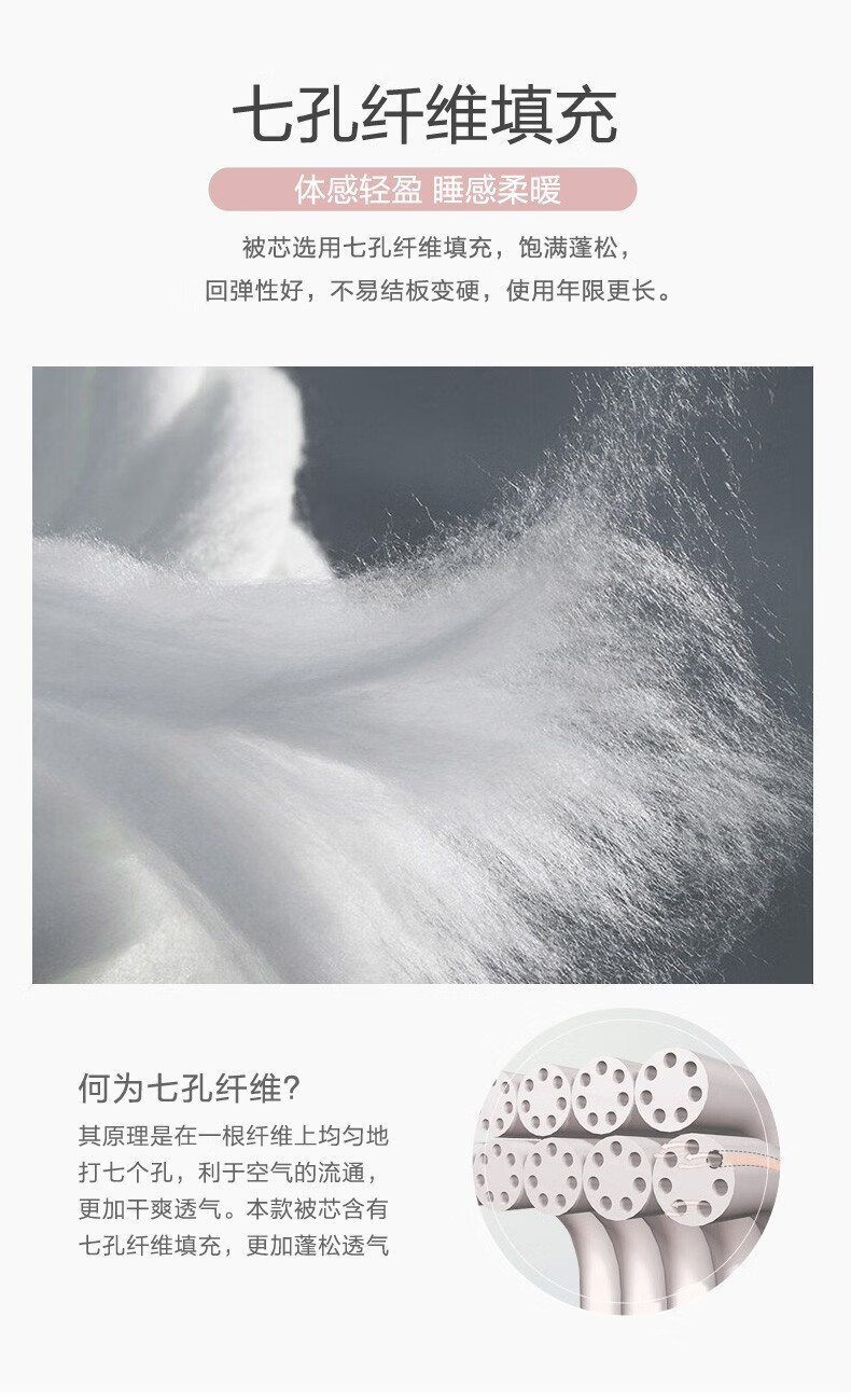 富安娜家纺被子被芯纤柔七孔冬被\粉色\203*229cm\1500g