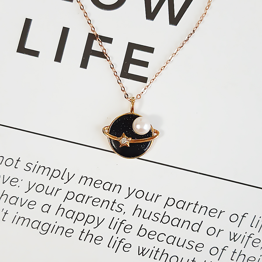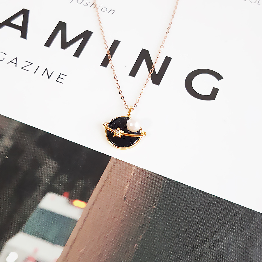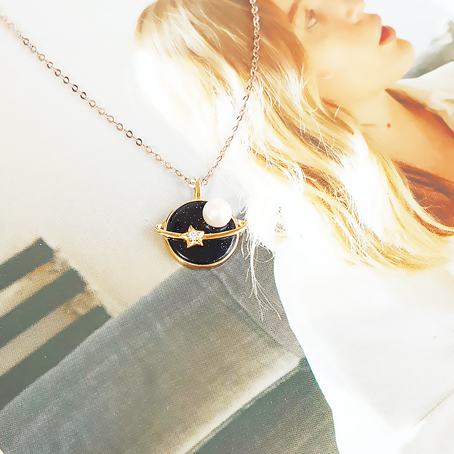 名称 | AU750黄金镶天然约4.2MM珍珠星球造型钻石吊坠项链 |