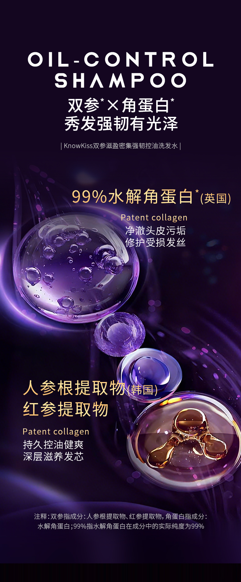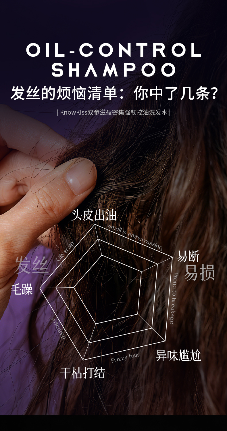 KnowKiss双参滋盈密集强韧控油洗发水400ml*3瓶