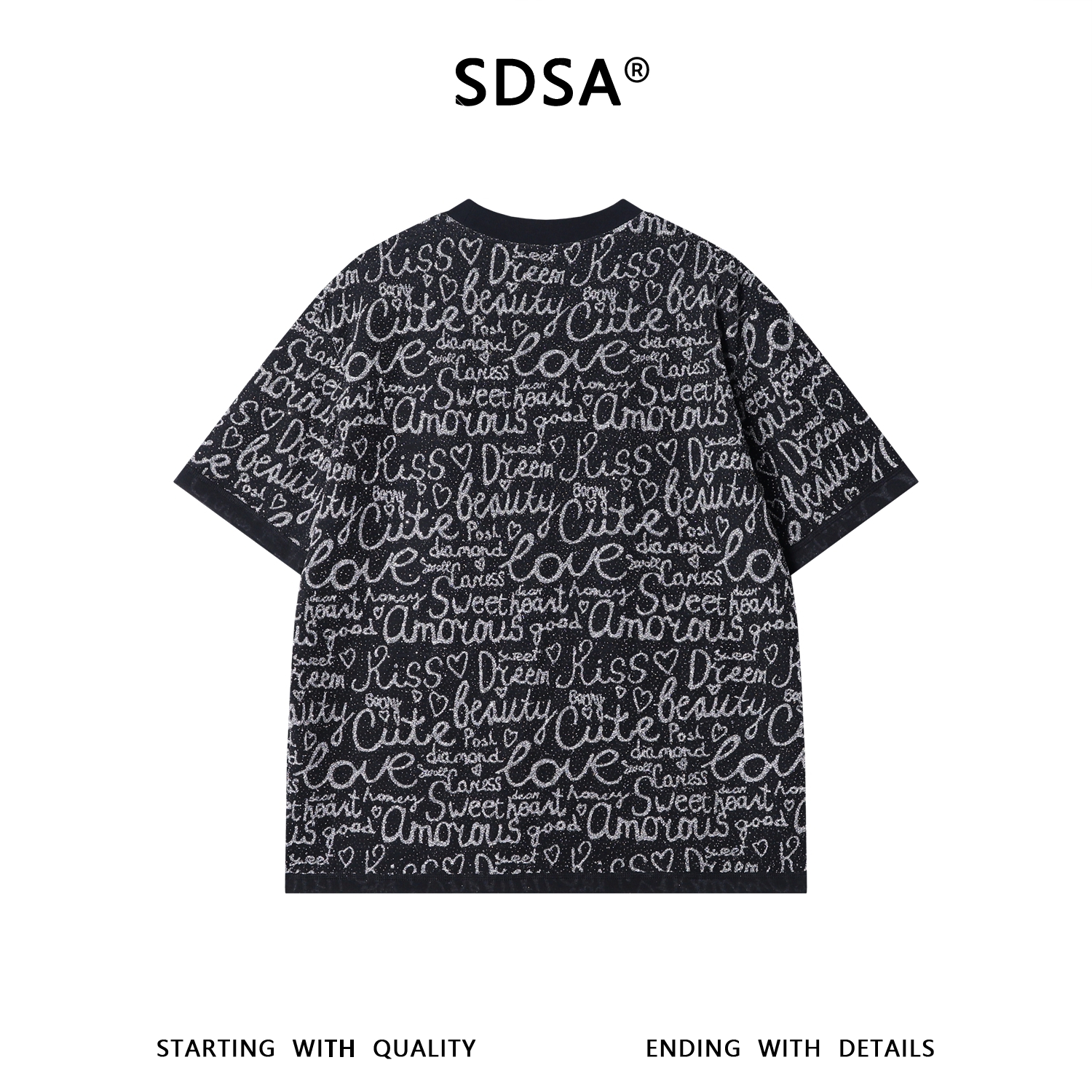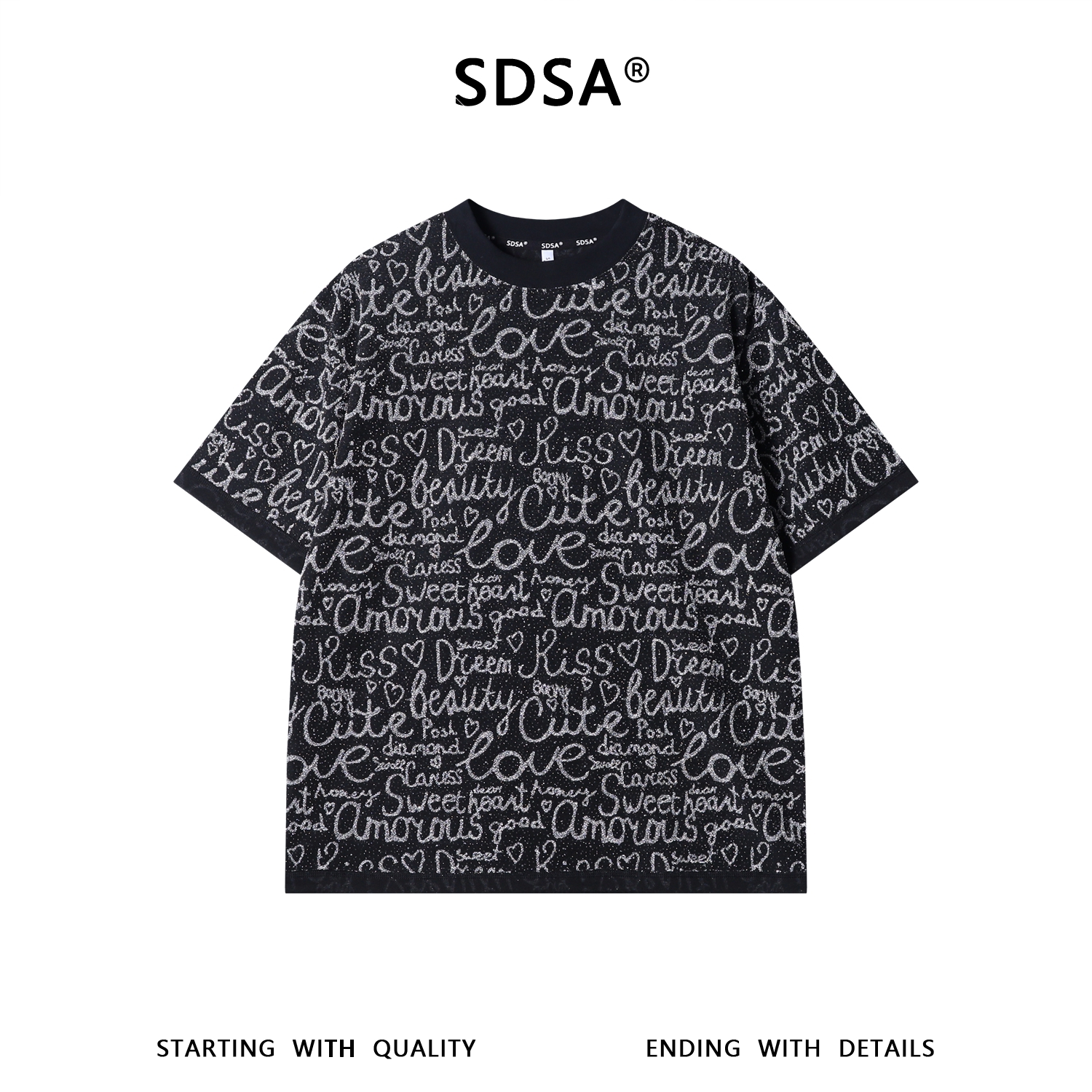 26T166SDSA男装2026新款高贵轻奢美式复古满天星字母圆领短袖T恤百搭潮