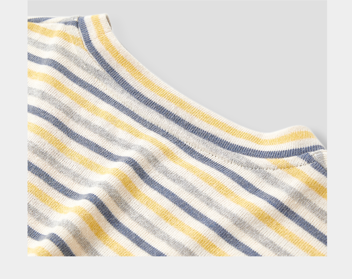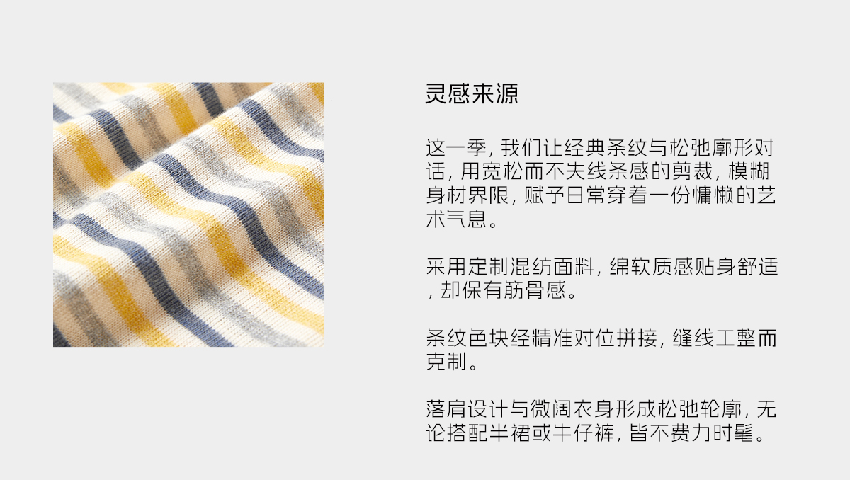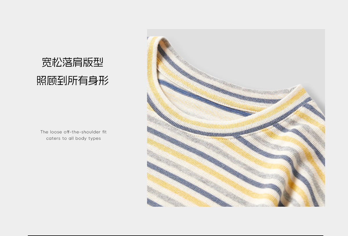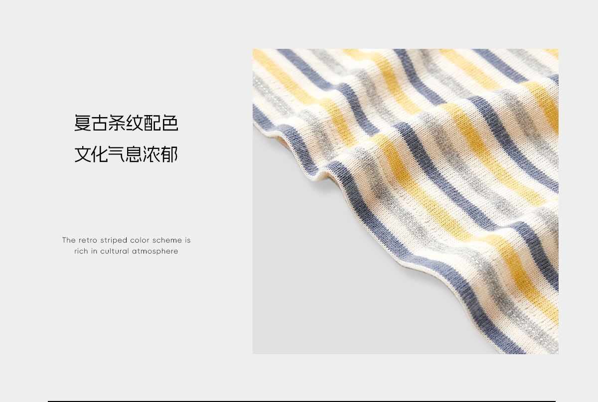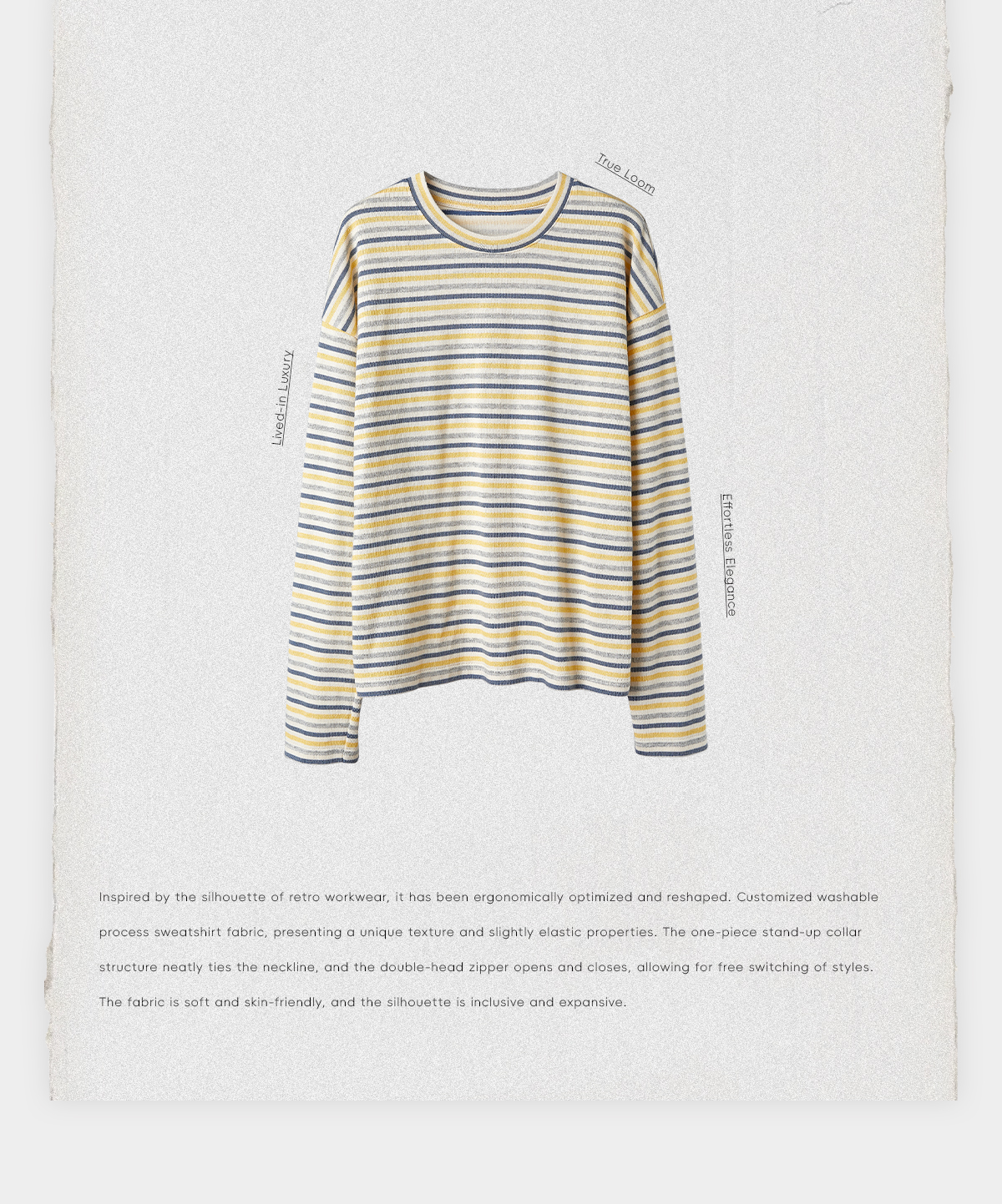 ROMI STUDIO“复古色彩”定织撞色条纹柔软圆领长袖T恤 RWCAS66185