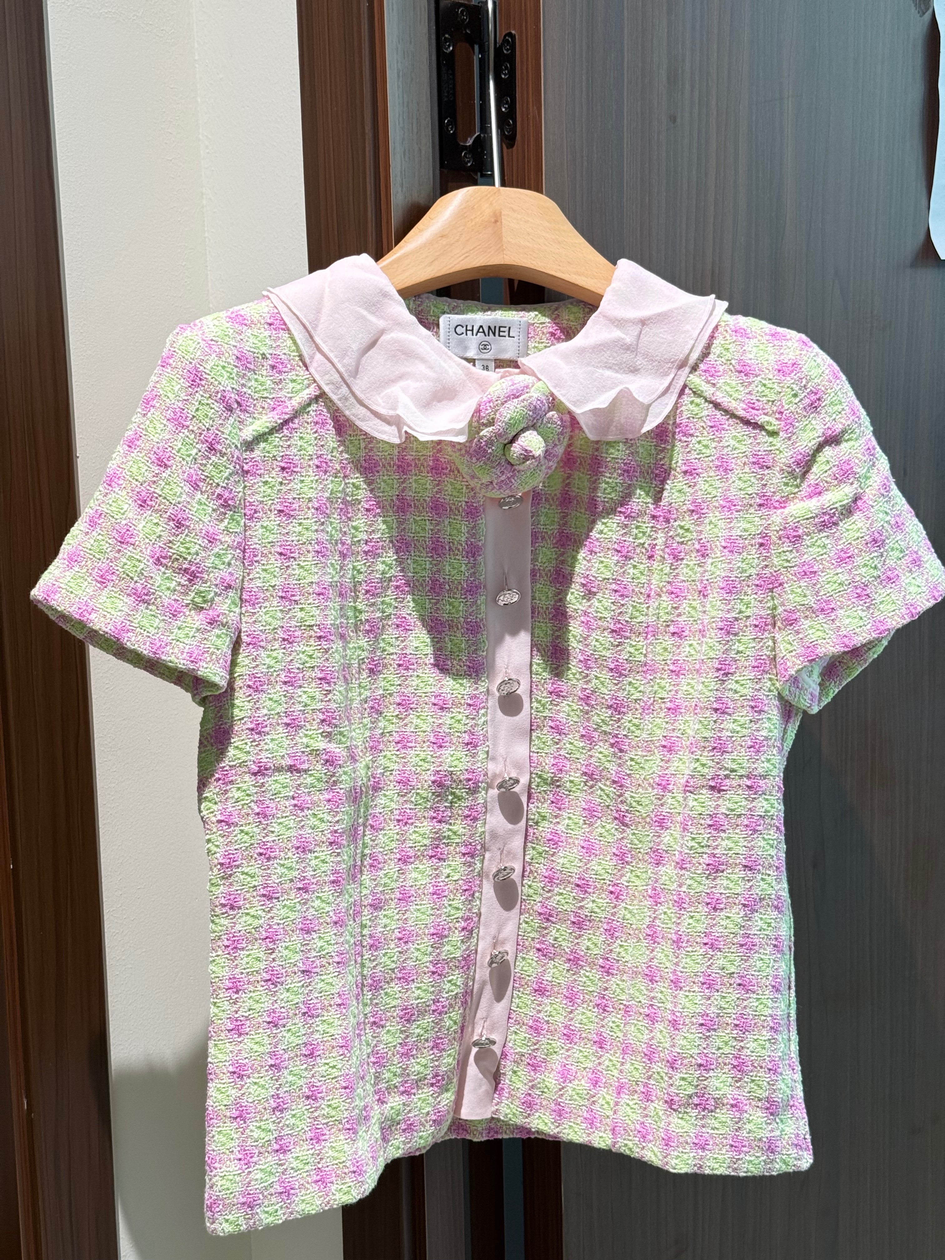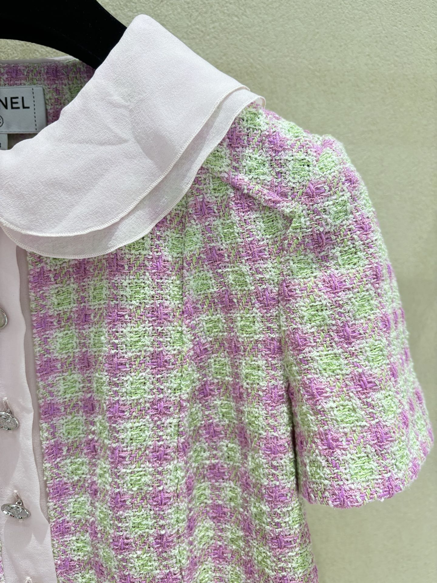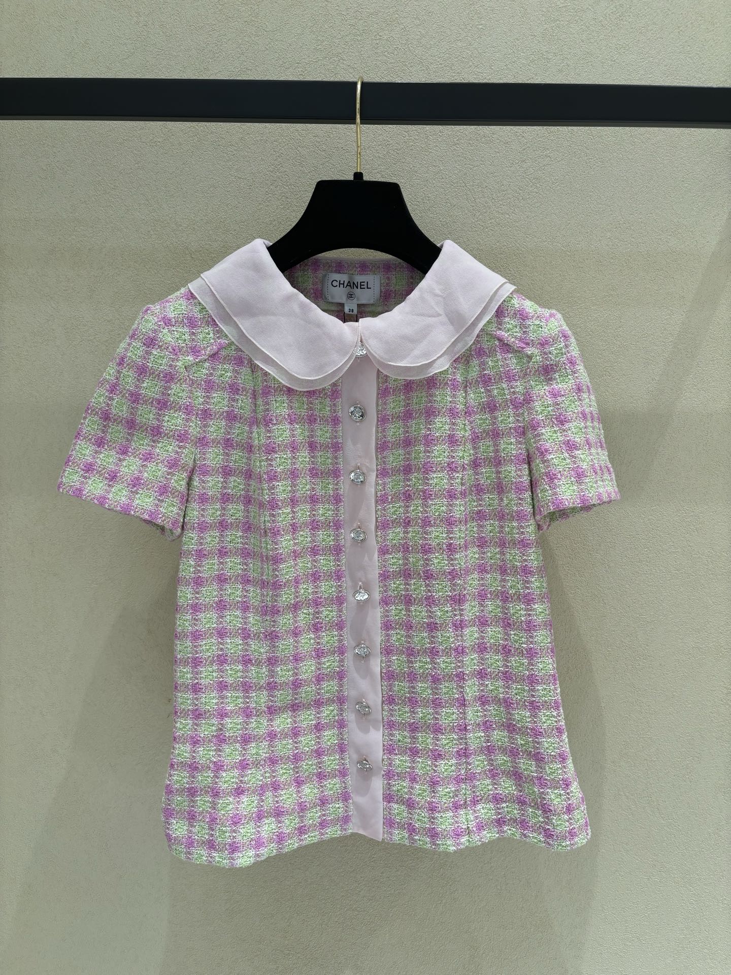 TY319-CHANEL香奈儿 25S 春夏系列 棉质粗花呢半袖针织衫 女款 粉色 (PG*MM)