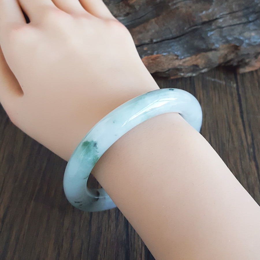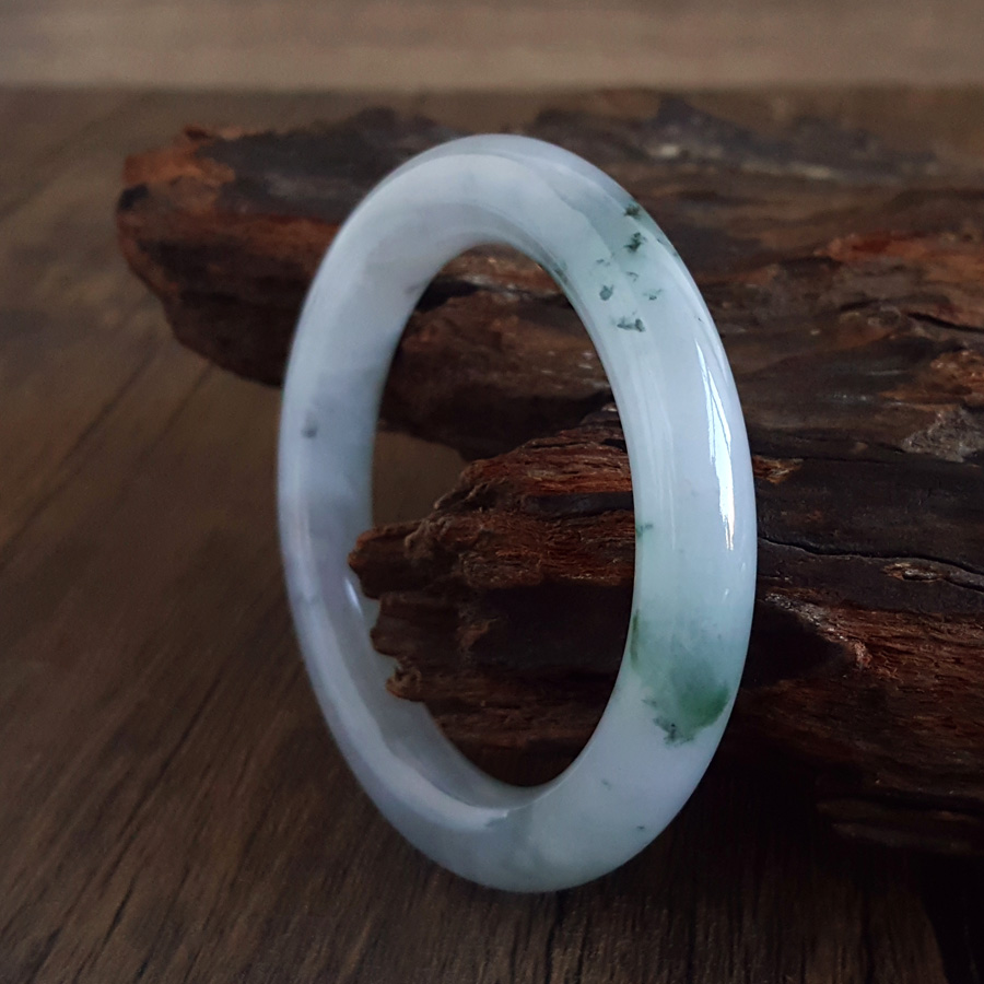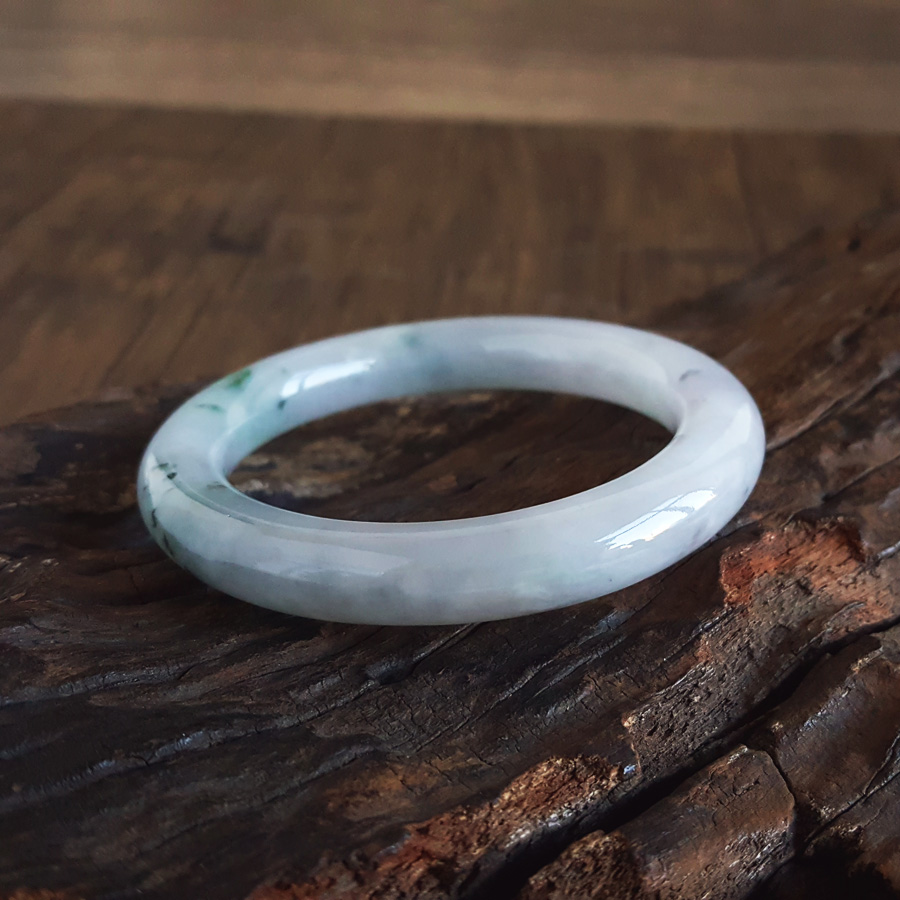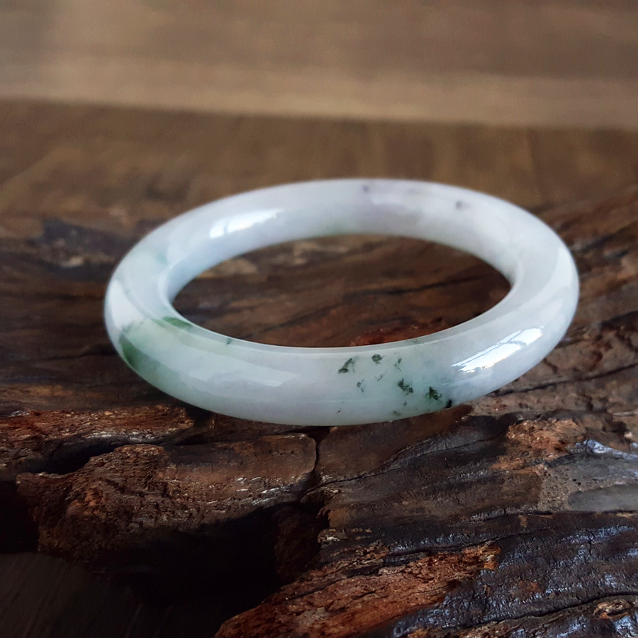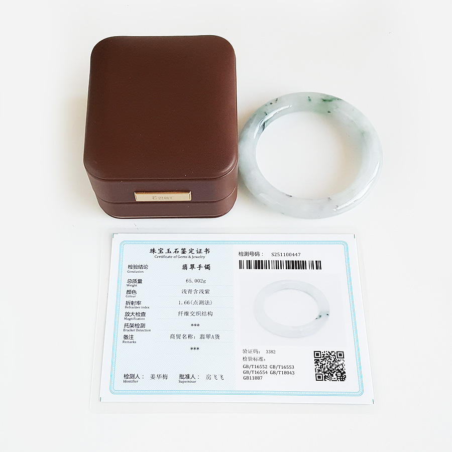 名称 | 天然圆条细腻飘蓝花浅紫糯种56.5号翡翠手镯 |