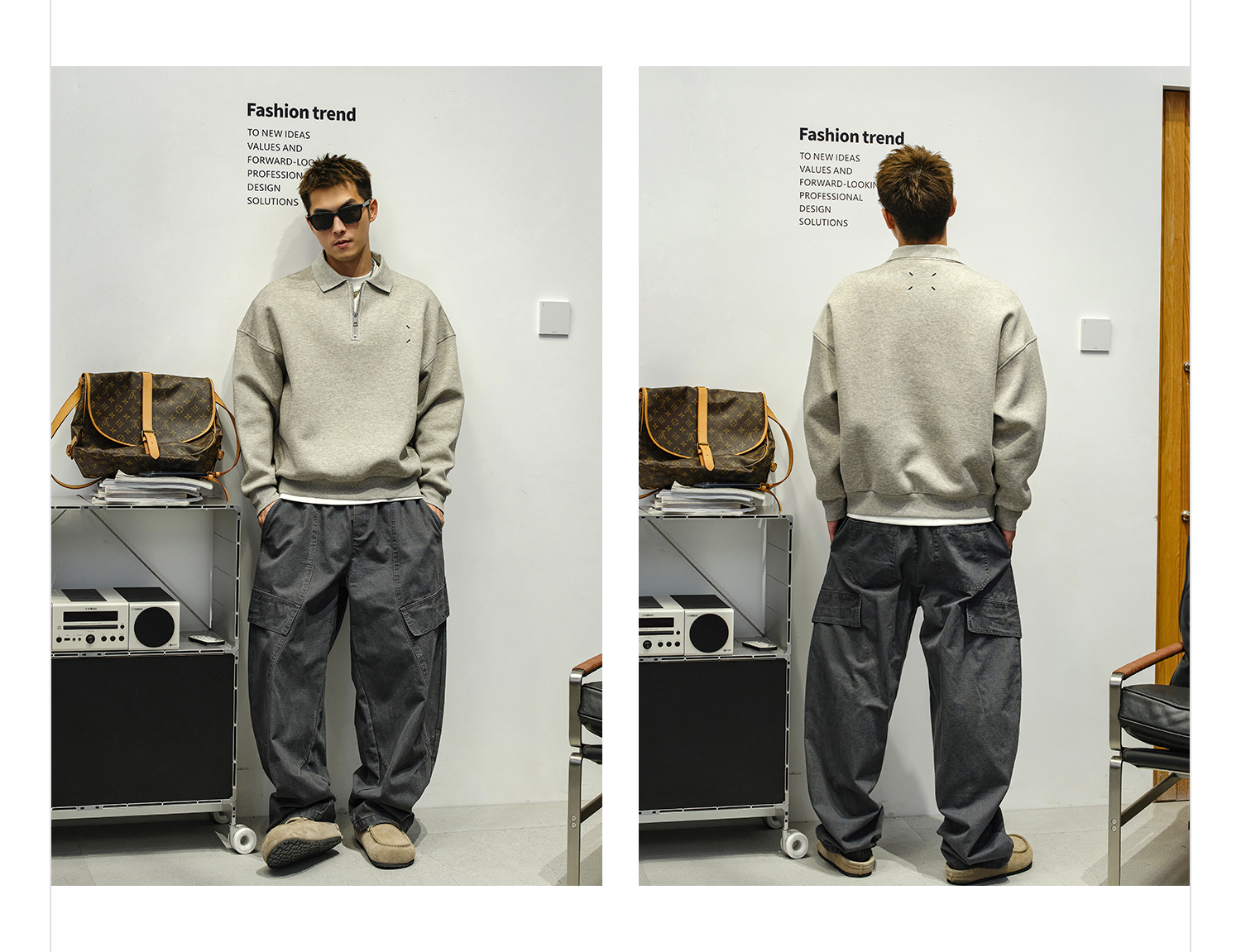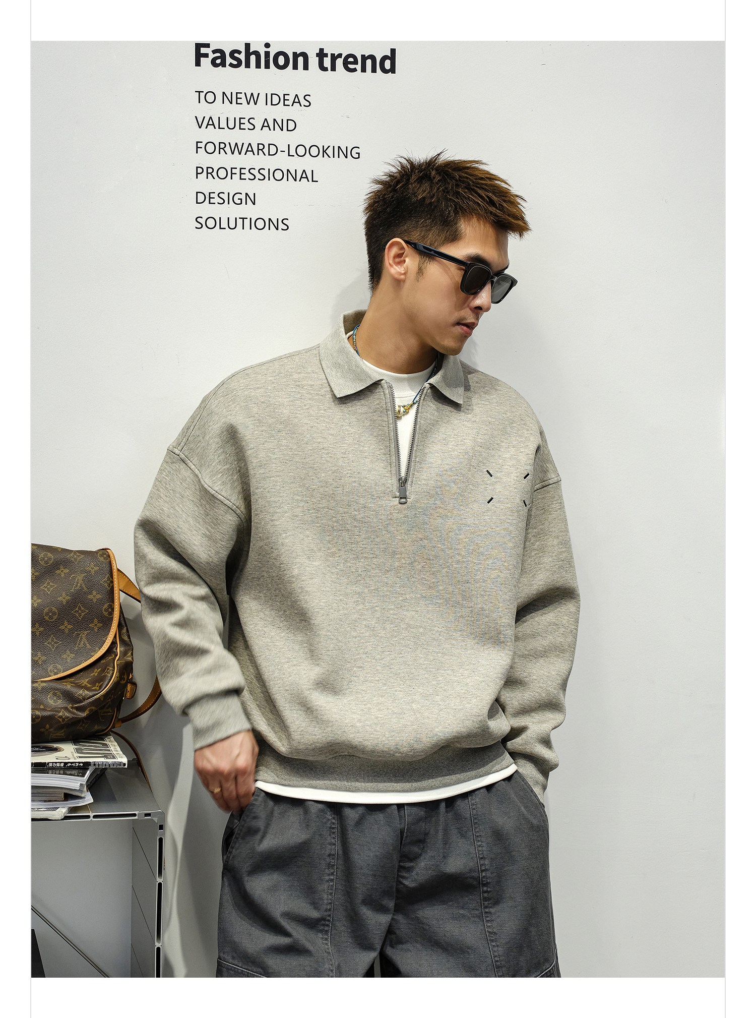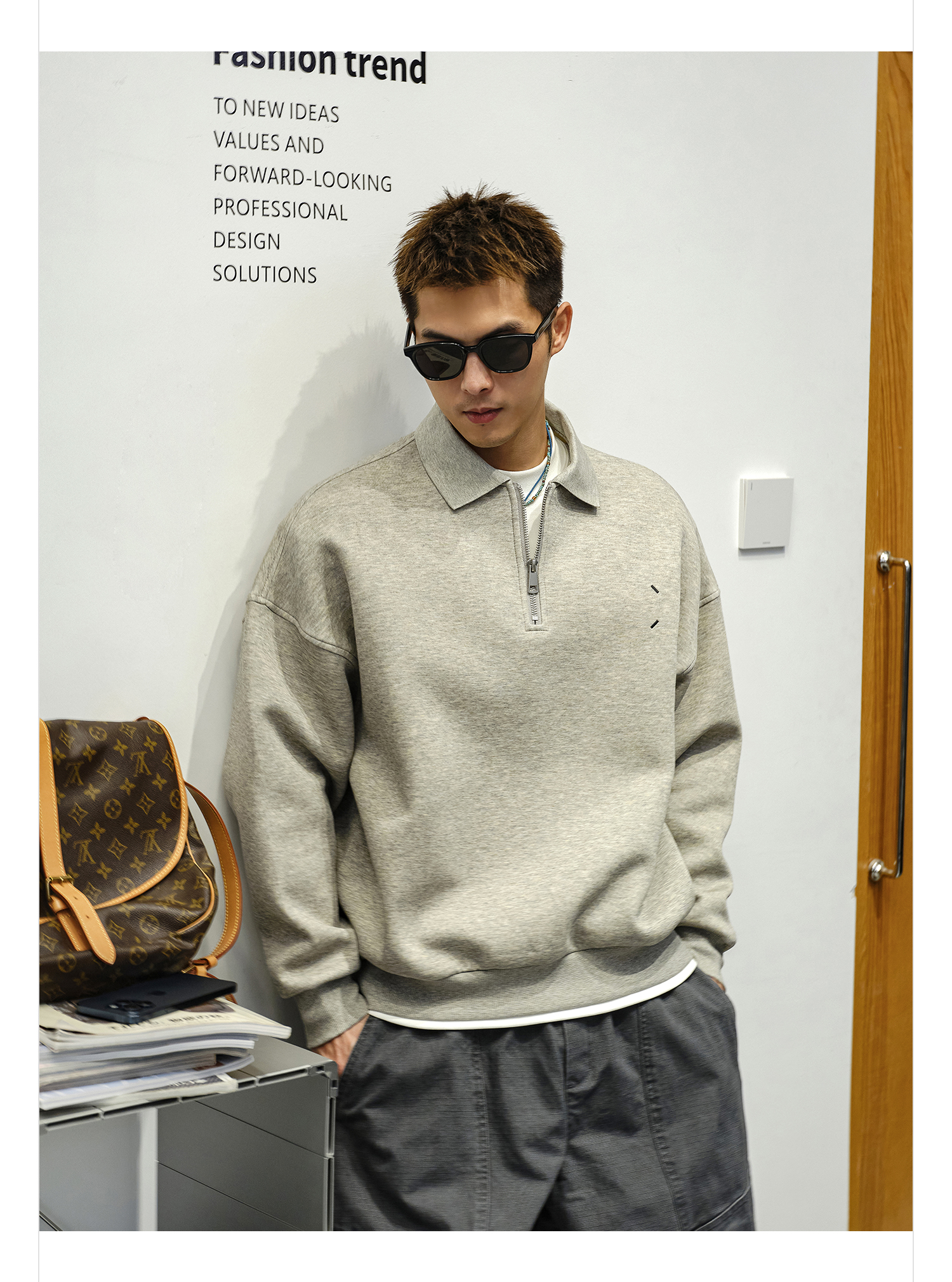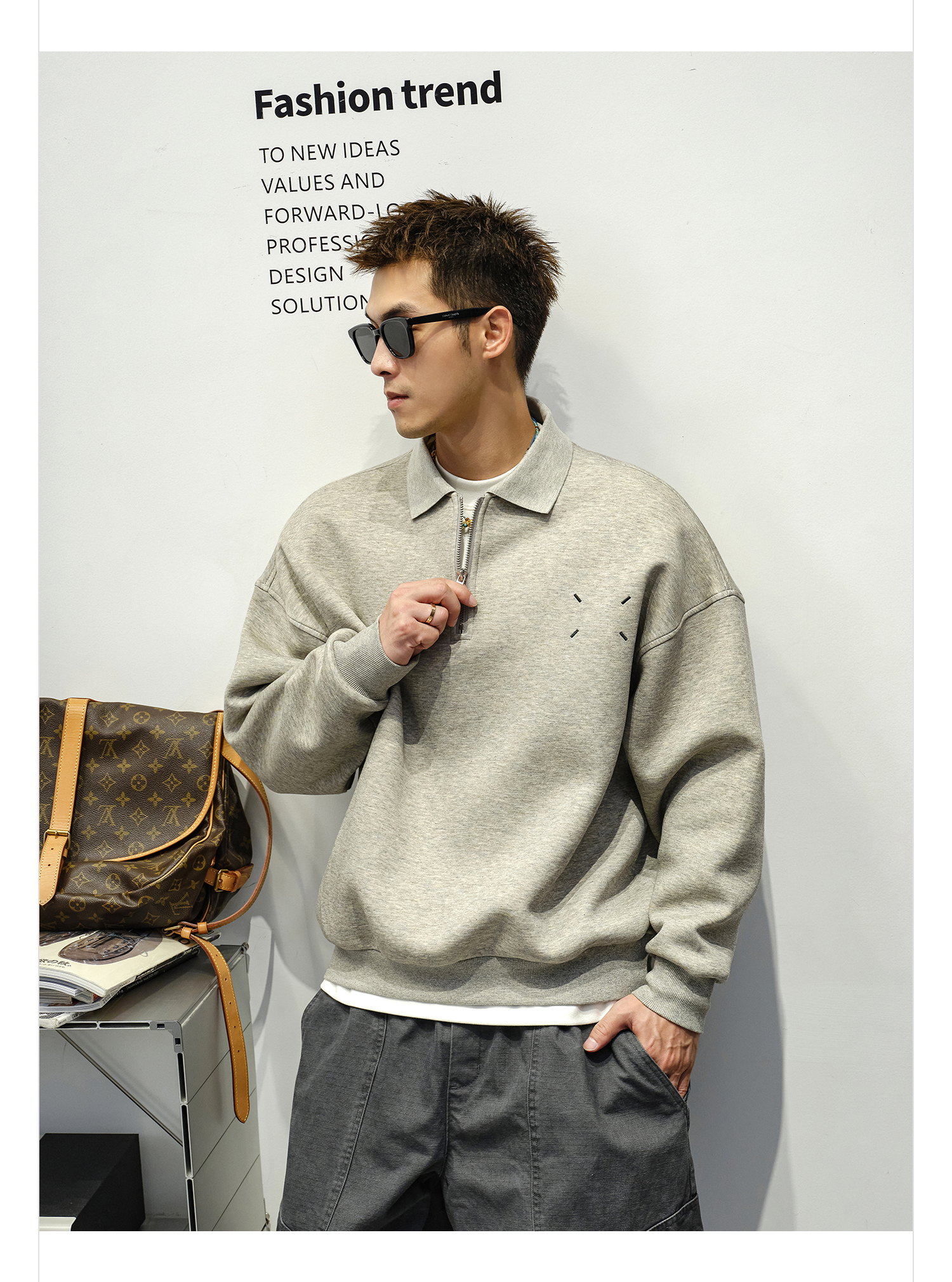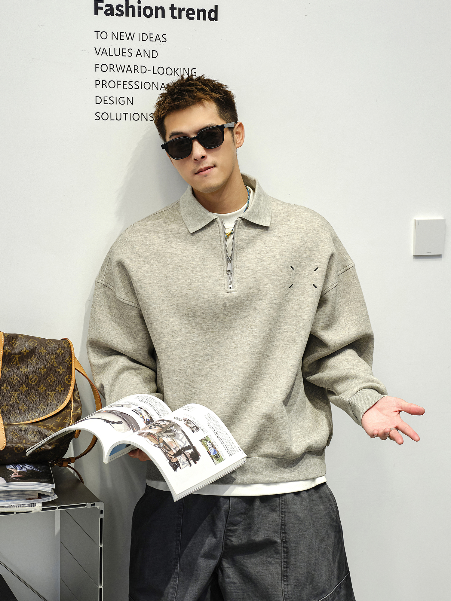 徐太浪【cleanfit 半拉链】灰色套头卫衣男秋季男装休闲通勤上衣