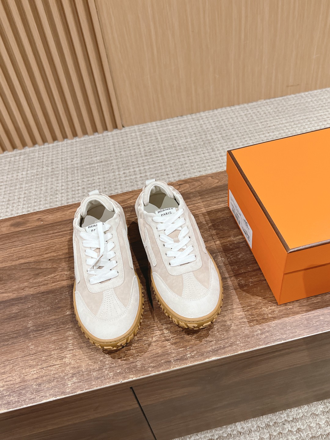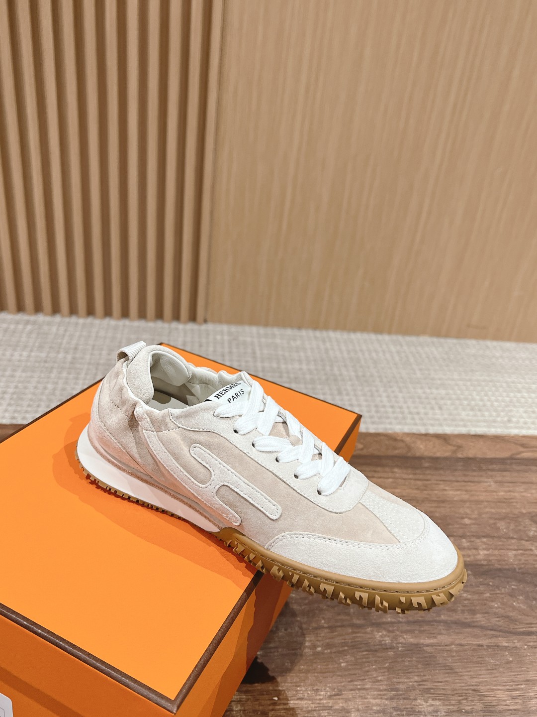 爱马仕jet系列麂皮德训鞋 运动鞋 原版购入开发 H家运动鞋 镂孔柔软麂皮山羊皮运动鞋(DBG)
