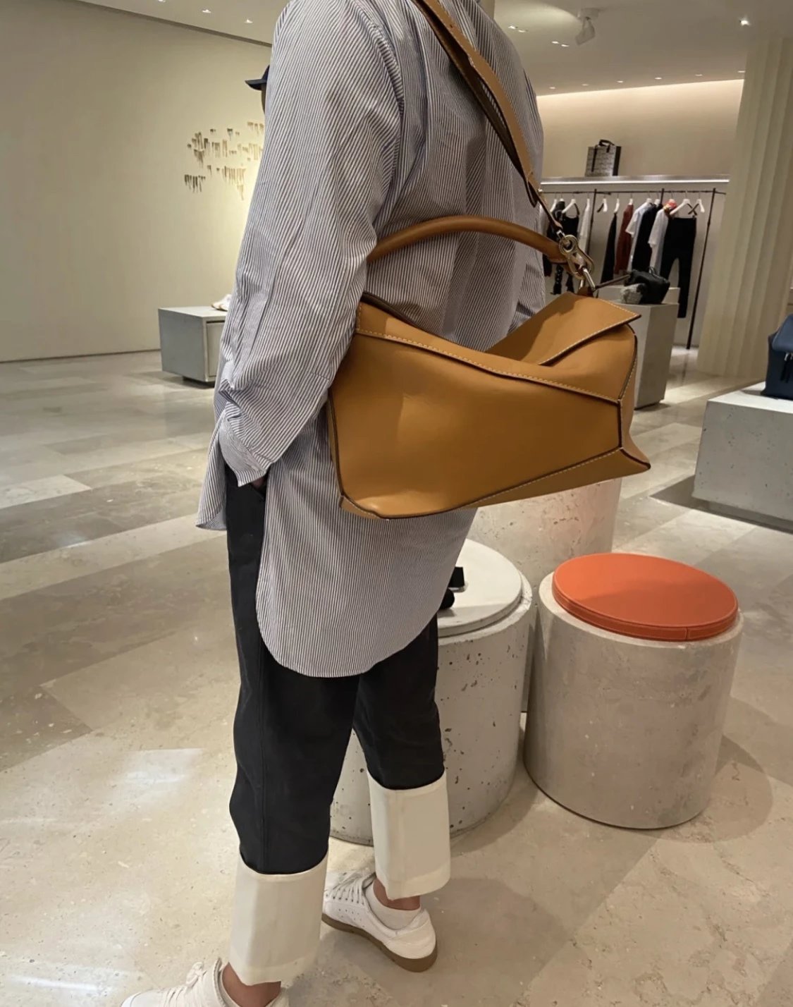 不规则的线条拼接设计 更带炫酷感。手拎、斜挎、后侧背 统统不在话下,还可以将包包折叠成几何形状 随性抱在手中 散发法式慵懒气质。