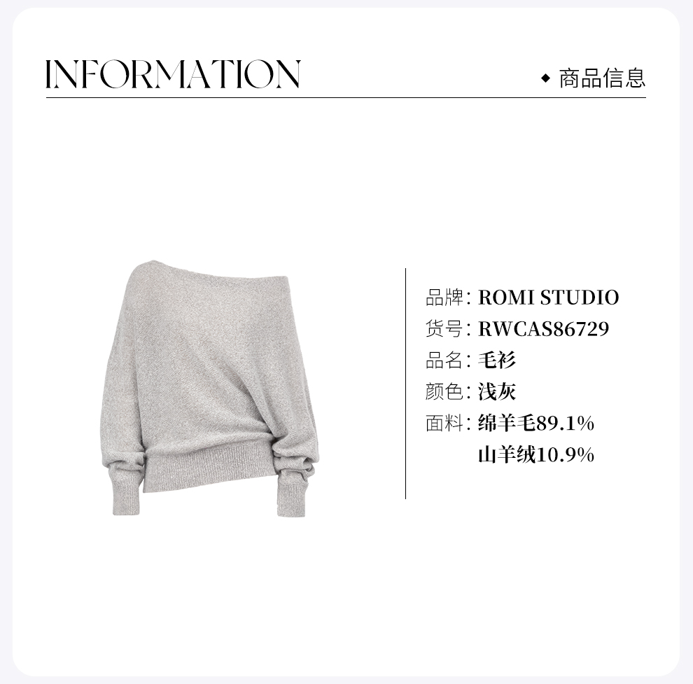 ROMI STUDIO14.5微米阿尔巴斯山羊绒轻盈柔滑套头毛衫 RWCAS86729