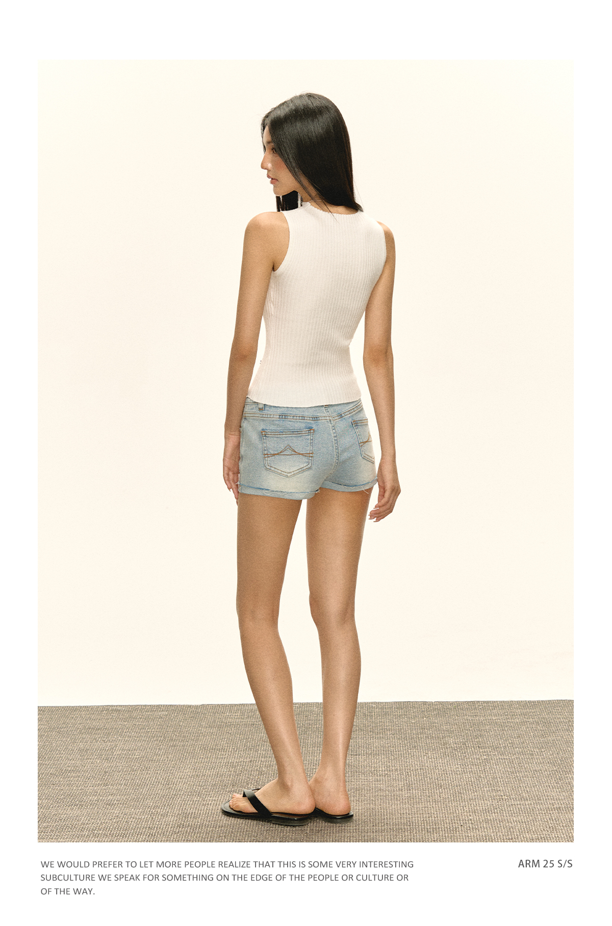 Ariseism 美式复古白色低腰针织包臀短裤女春夏新款显瘦紧身热裤
