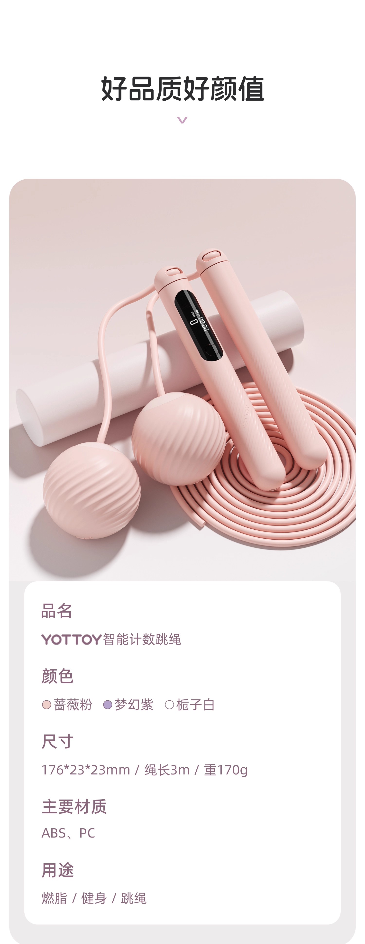 跳绳【YOTTOY】跳绳无绳女智能计数成人减肥专用燃脂健身负重力球家用室内跳绳子