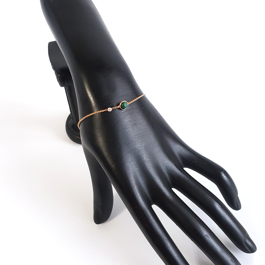 款式 | 18K玫瑰金镶钻孔雀石时来运转手链 |