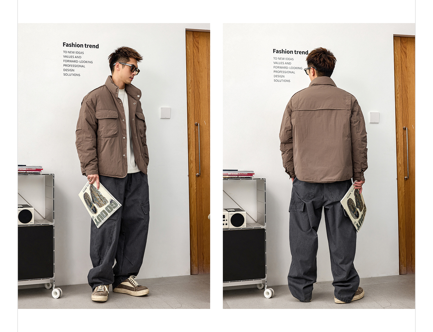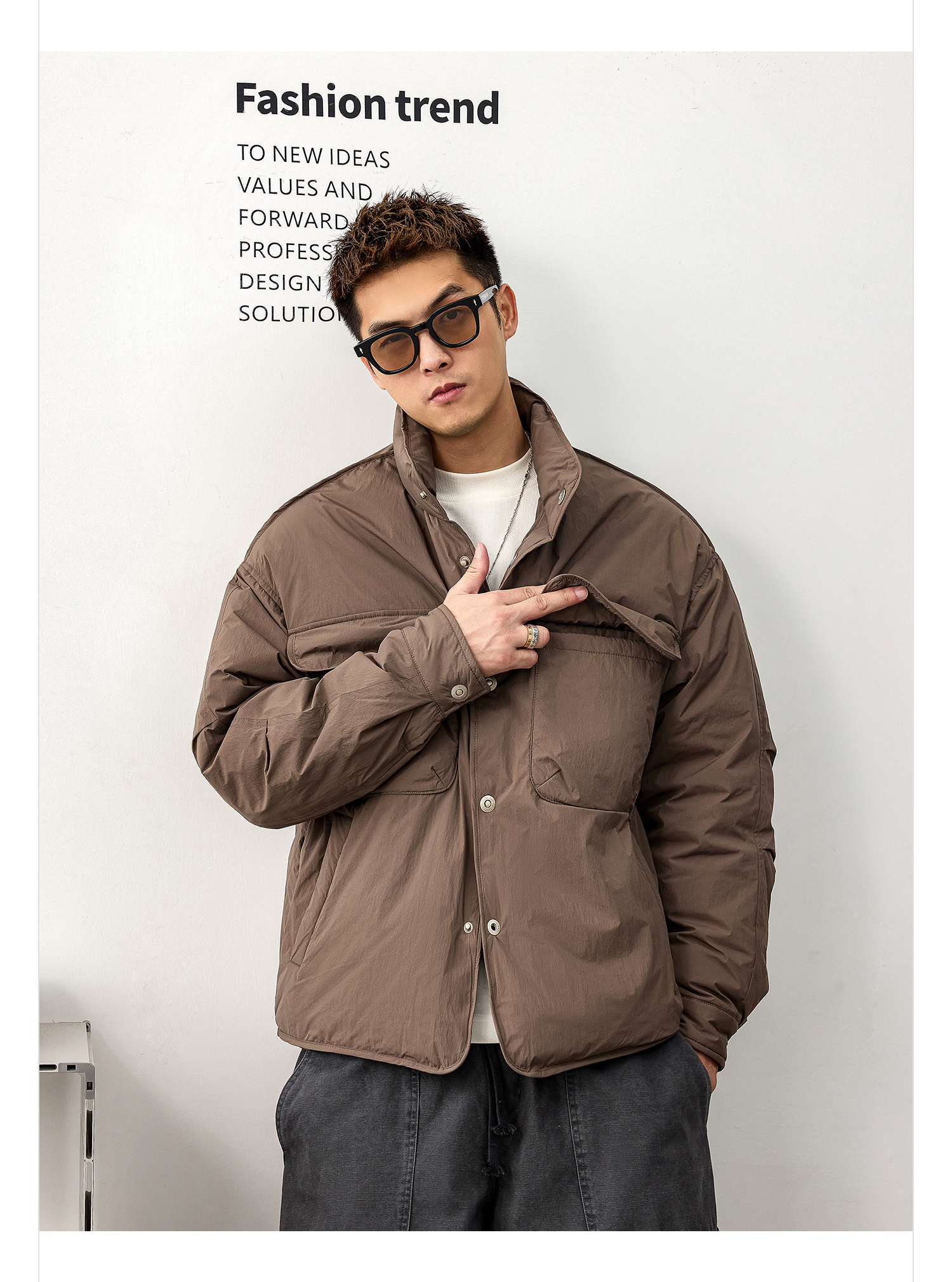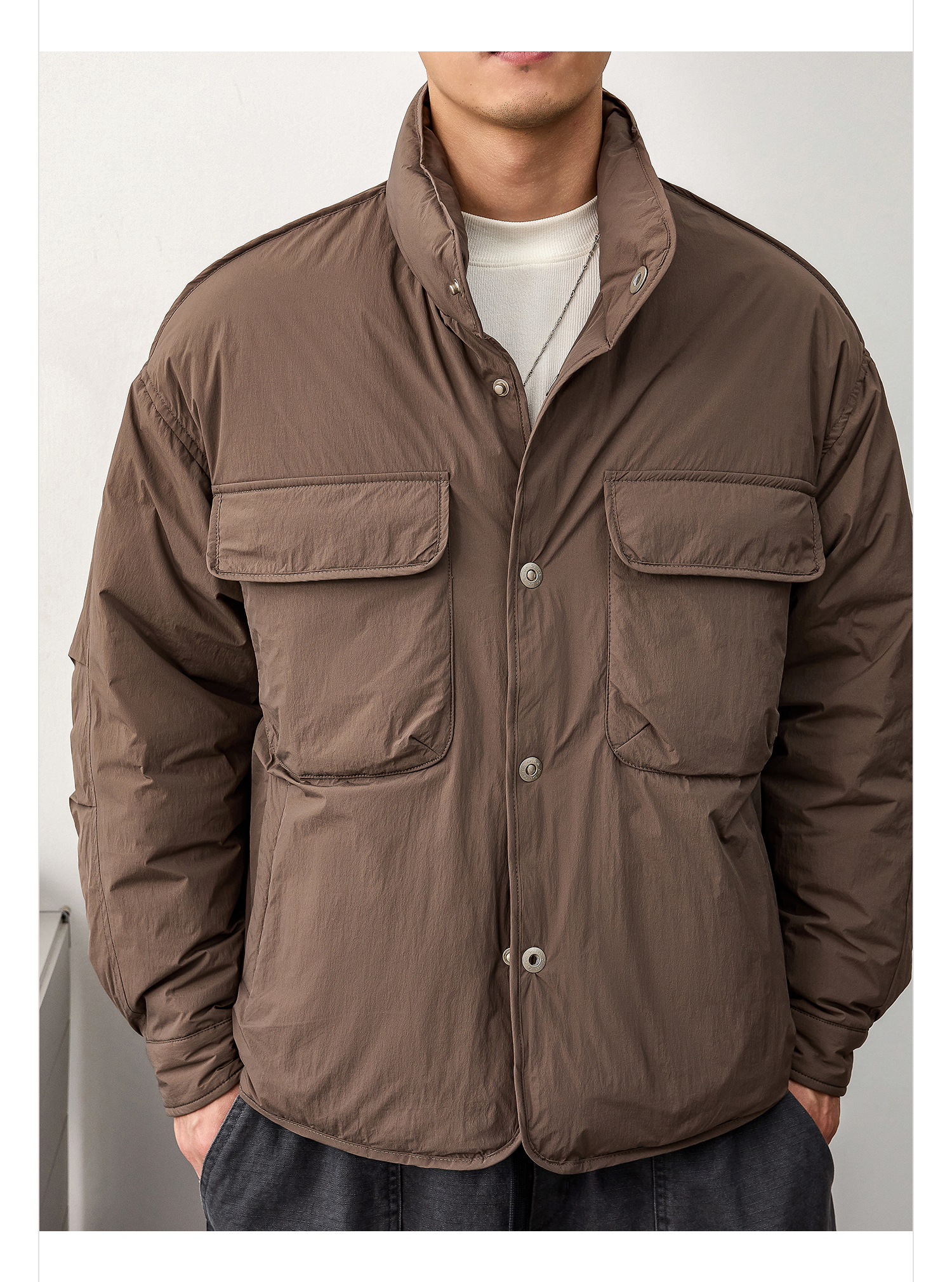 徐太浪【复古休闲 拼接口袋】云朵泡芙羽绒服男冬季保暖防寒外套