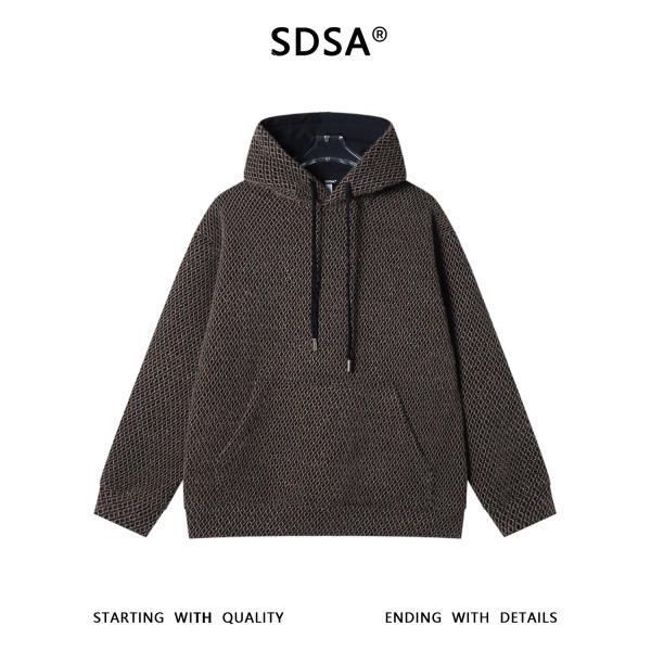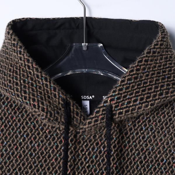 WY1424SDSA男士秋冬新款痞帅男装简约提花小格子抽绳连帽卫衣绒毛百搭潮