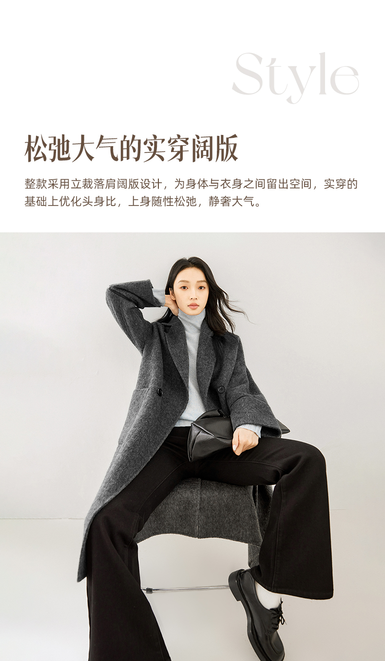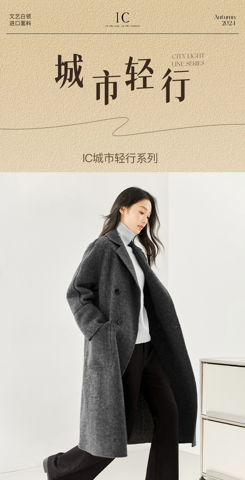 IC 秋冬高级感格调休闲毛呢外套女气质通勤双面呢大衣