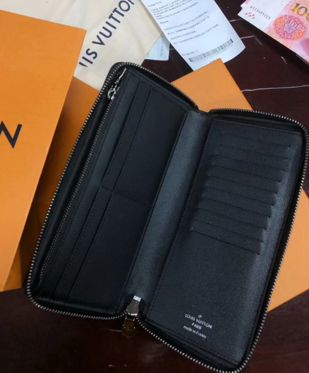 LouIs VUITTON Zippy 时尚而实用金属饰件环绕式拉链构造 涂层帆布拼牛皮革 钱包 常规 男款 黑(CB)