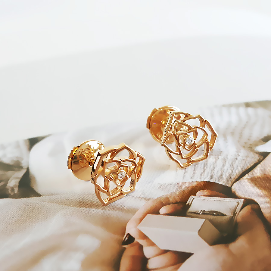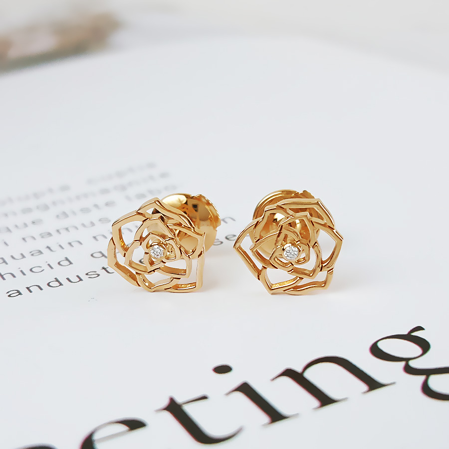 【98新】Piaget伯爵Rose系列G38U006918K玫瑰金镶钻镂空玫瑰花Rose耳环061125NJ03