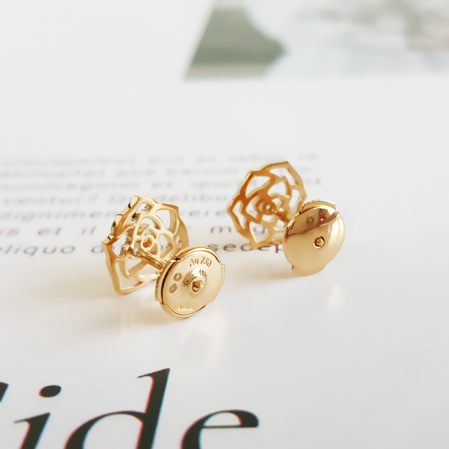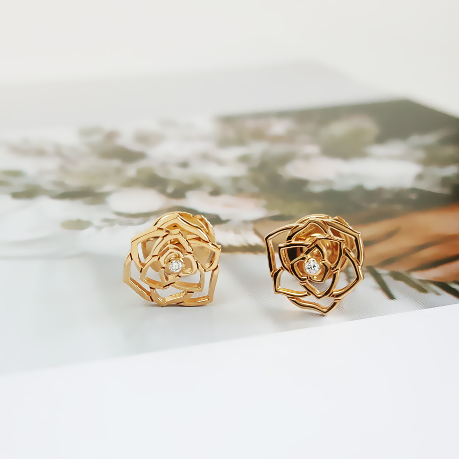 款式 | 18K玫瑰金镶钻镂空玫瑰花Rose耳环 |