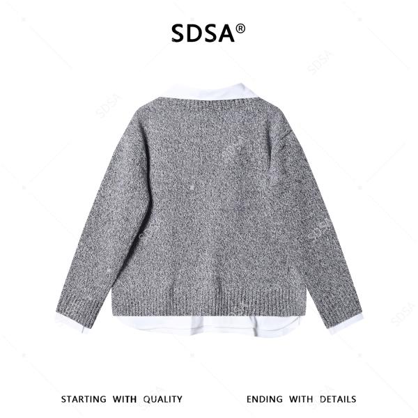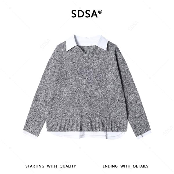 SDSA男装2026新款日系针织上衣杂点工艺衬衫领拼接宽松针织衫