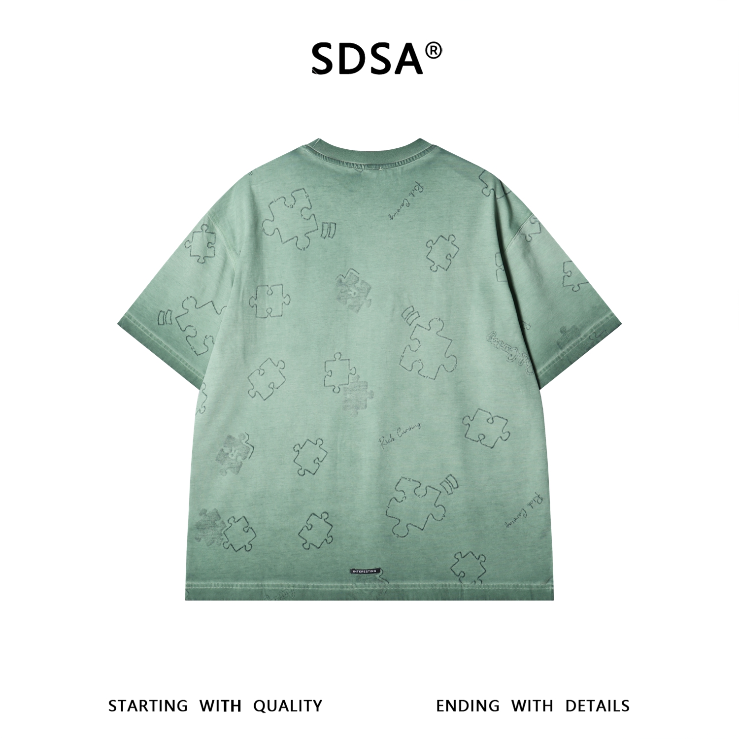 SDSA男装2026新款高贵轻奢拼图暗纹提花短袖T恤宽松圆领休闲上衣