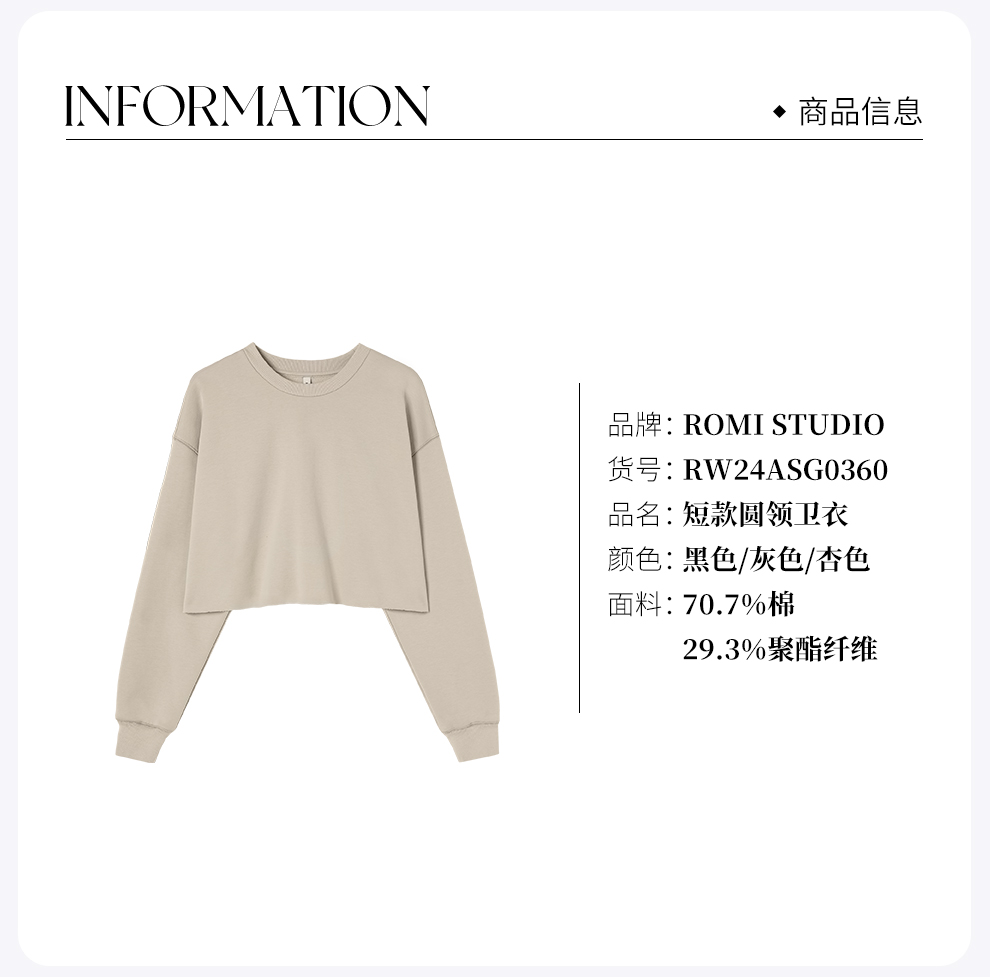 ROMI STUDIO“松弛纽约”甄选棉混纺内加绒廓形短卫衣 RW24ASG0360