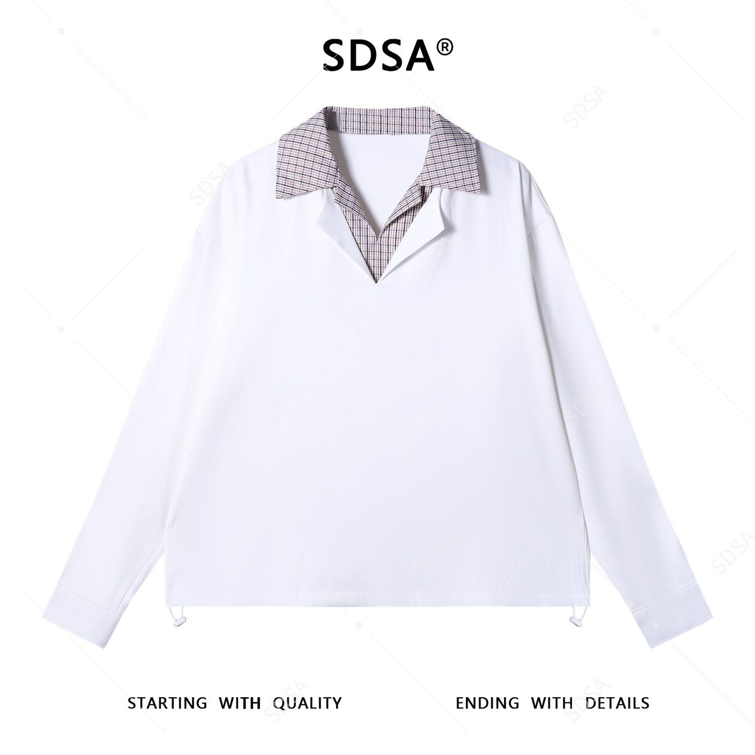 6904SDSA男士秋冬新款痞帅男装潮牌拼接翻领长袖衬衣下摆松紧设计百搭