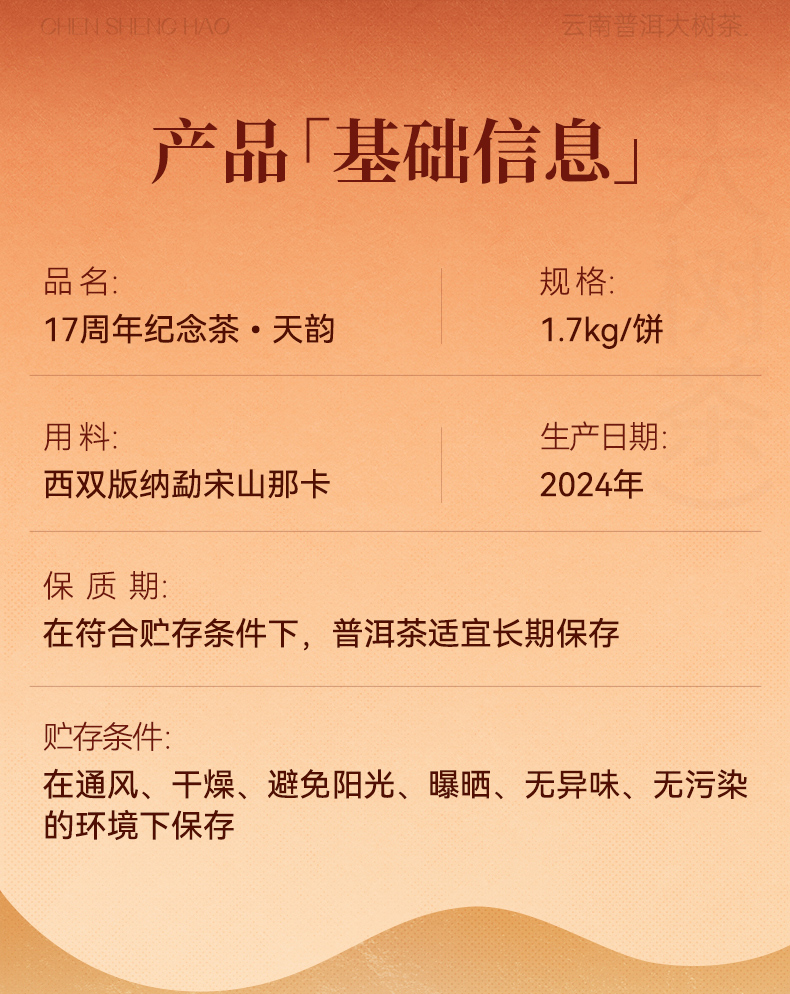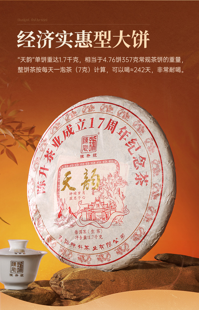【17周年纪念茶】陈升号 2024年天韵1700g(生茶)