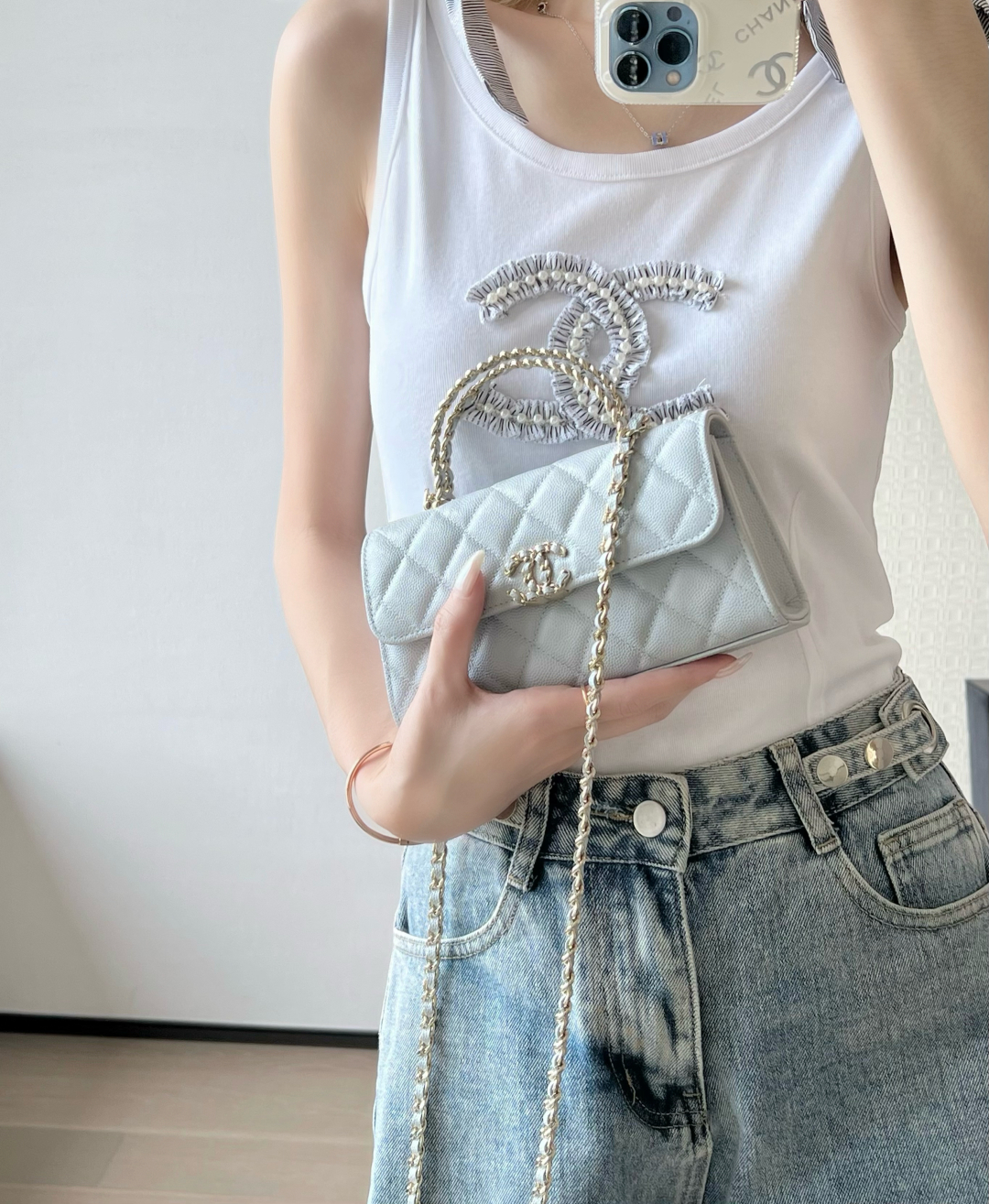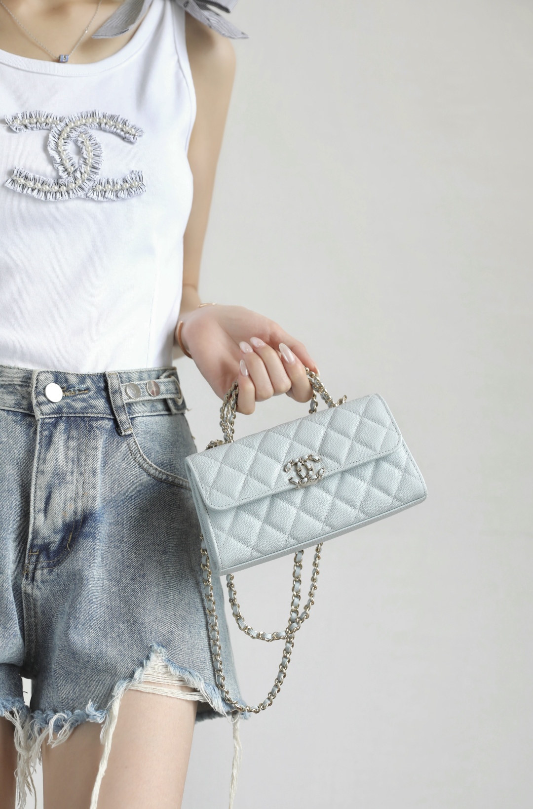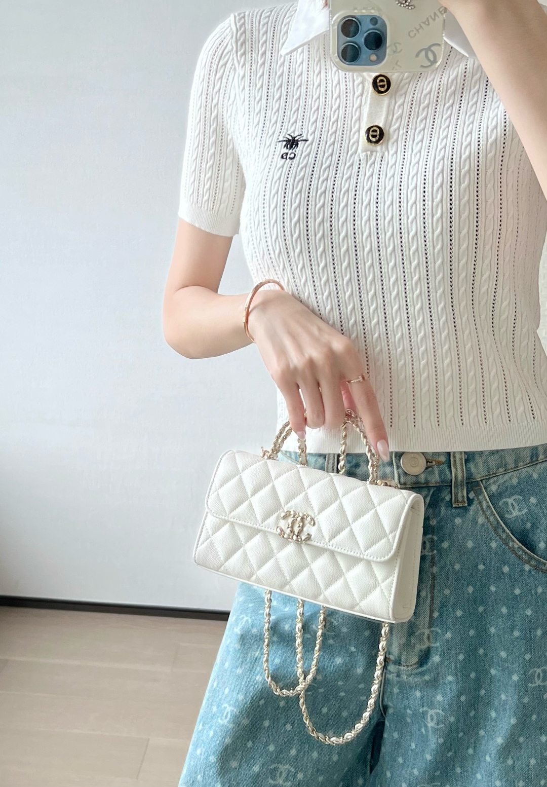 全新发售 𝗖𝗵𝗮𝗻𝗲𝟭 𝟮𝟱𝘀春夏 交叉手柄𝖬𝗂𝗇𝗂𝖪𝖾𝗅𝗅𝗒 专柜售价𝟥𝟣𝟪𝟢𝟢𝗋𝗆𝖻购入开发~ 爆款轮回🔥全新版本迷你𝗄𝖾𝗅𝗅𝗒横款 当𝖢𝗁𝖺𝗇𝖾𝗅传奇美学与精致工艺碰撞, 这款交叉链手柄𝖬𝗂𝗇𝗂𝖪𝖾𝗅𝗅𝗒应运而生 设计独具巧思,有优雅的手提韵味, 又能随性斜挎,解锁多样时尚造型~ 五金:厚镀𝟣𝟦𝗄淡金扣 面料:𝗂𝗆𝗉𝖺𝗅𝖺”三只羊“小球纹 尺寸:𝟣𝟢*𝟣𝟪*𝟦.𝟧 𝖼𝗆